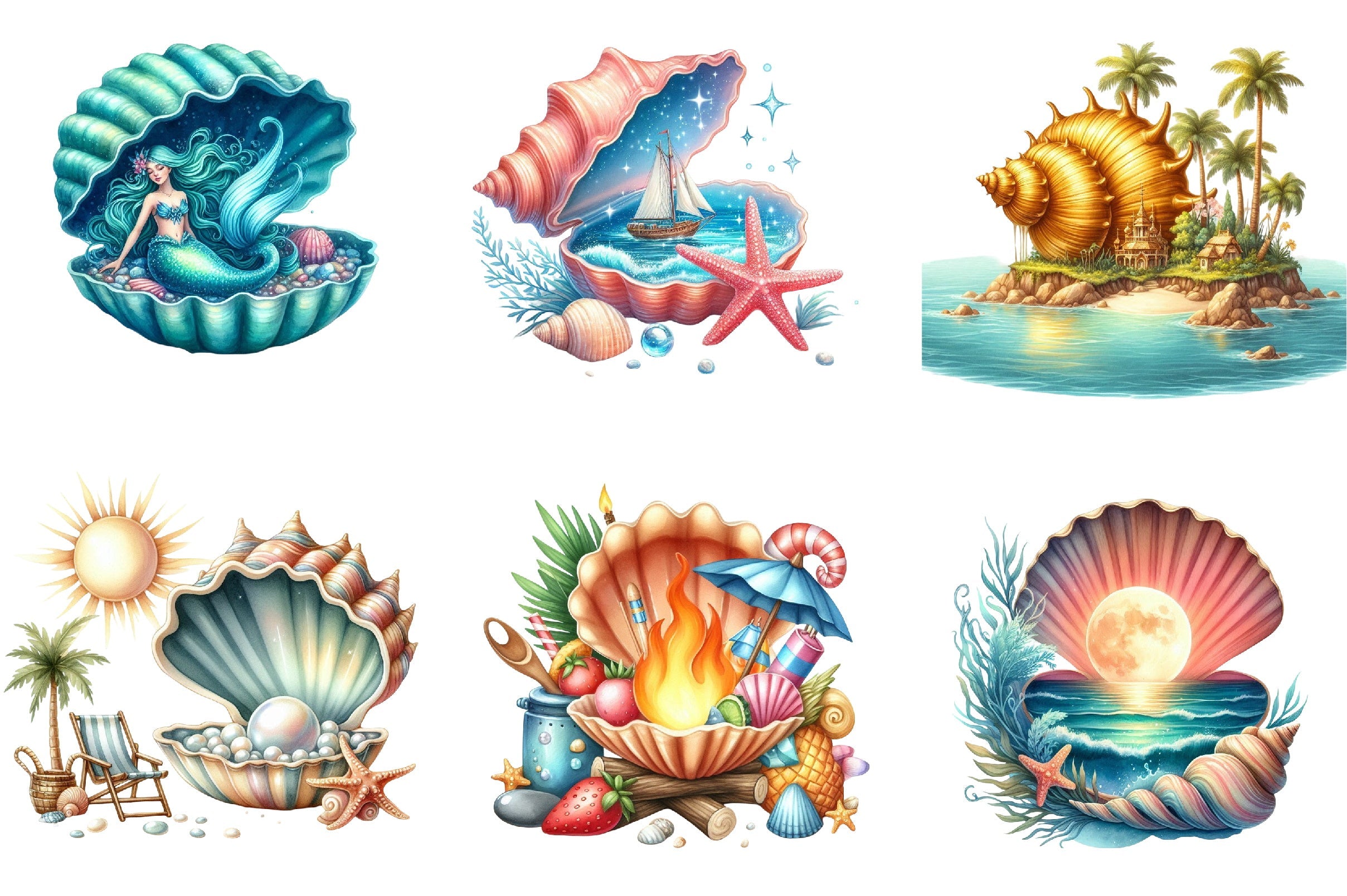 Elevate your creativity with our Seashell Clipart Bundle, offering a diverse collection of beach-inspired designs ideal for summer projects and oceanic art.