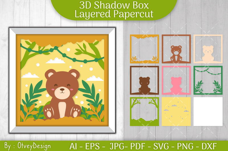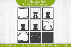 Bear Animals Shadow Box Layered Papercut SVG Bundle