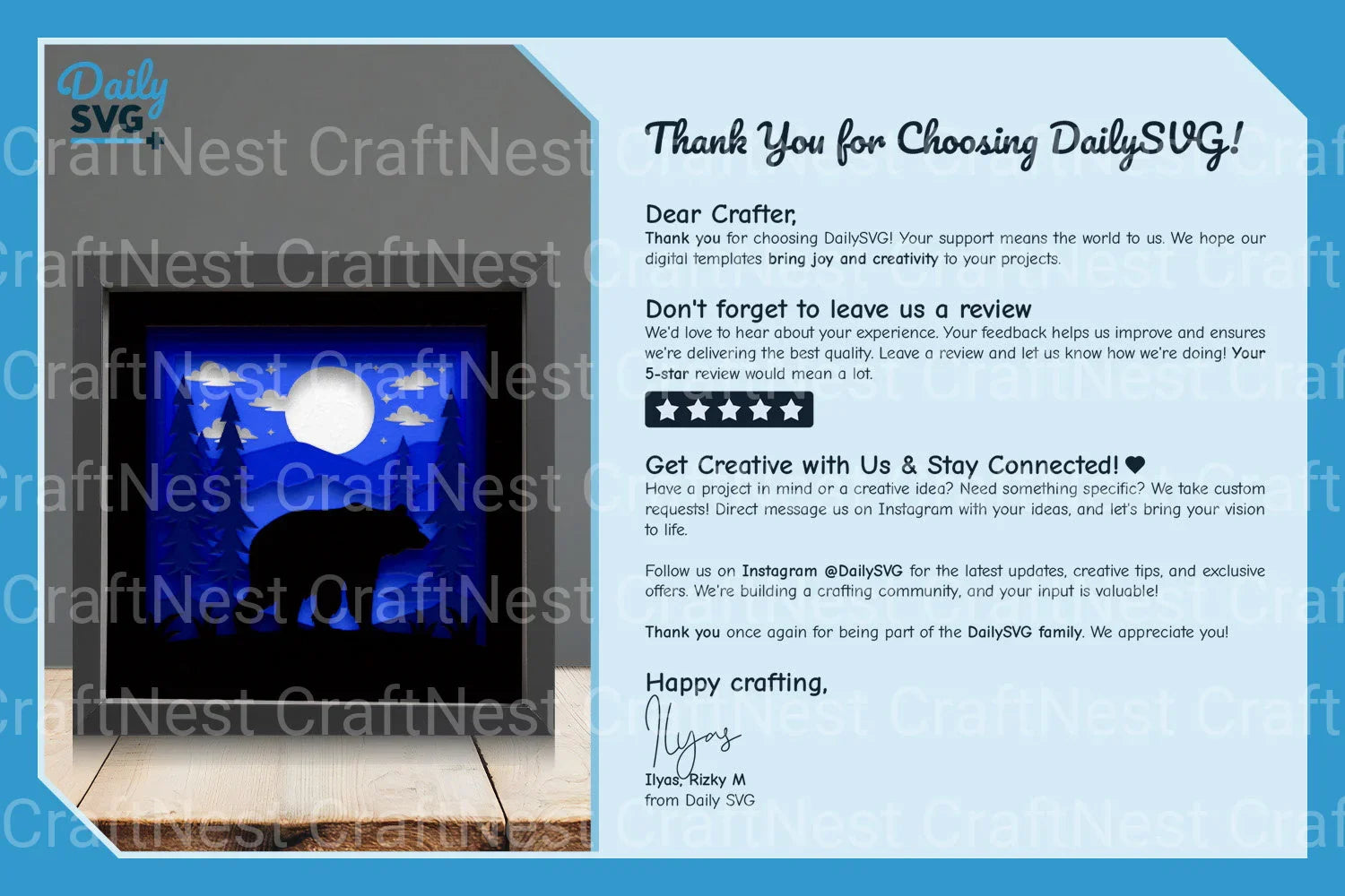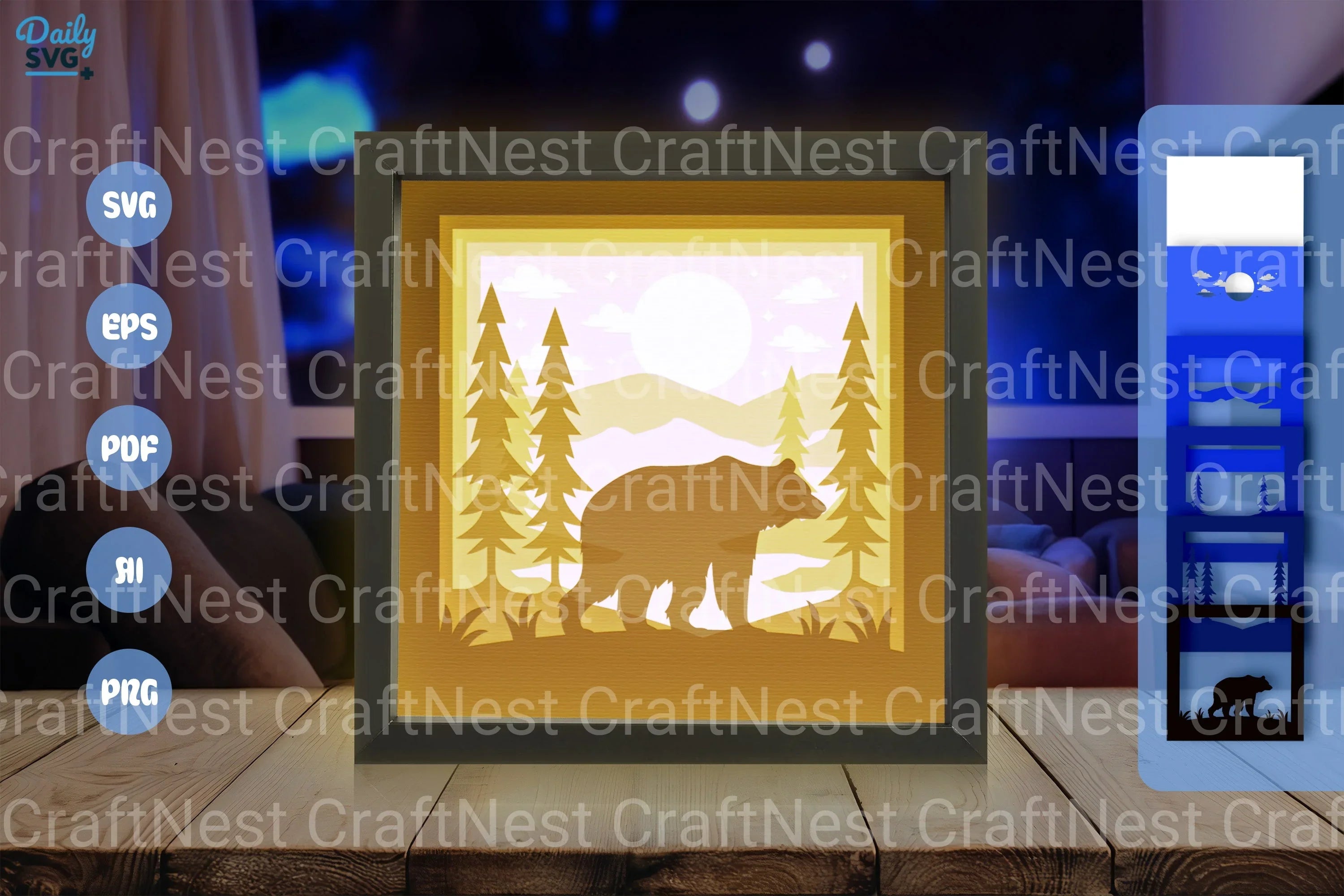 Explore the enchanting Bear in Night Forest Papercut SVG Bundle, perfect for creating magical woodland-themed crafts. This collection features intricate bear and forest designs, ideal for DIY projects, home decor, and personalized gifts. Elevate your creativity with these high-quality, easy-to-use SVG files.