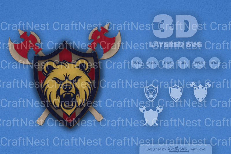 Unleash creativity with the Bear Shield Laser Cut SVG Bundle, featuring intricate bear shield designs perfect for personalized gifts, home decor, and unique craft projects.