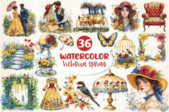 Elegance with this Beautiful Victorian Spring Clipart Bundle, featuring ornate spring designs, perfect for vintage garden crafts.