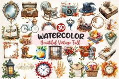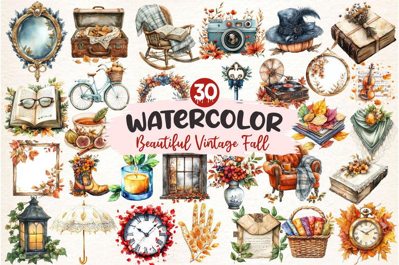 Autumn with this Beautiful Vintage Fall Clipart Bundle, featuring retro seasonal designs, perfect for nostalgic fall crafts.