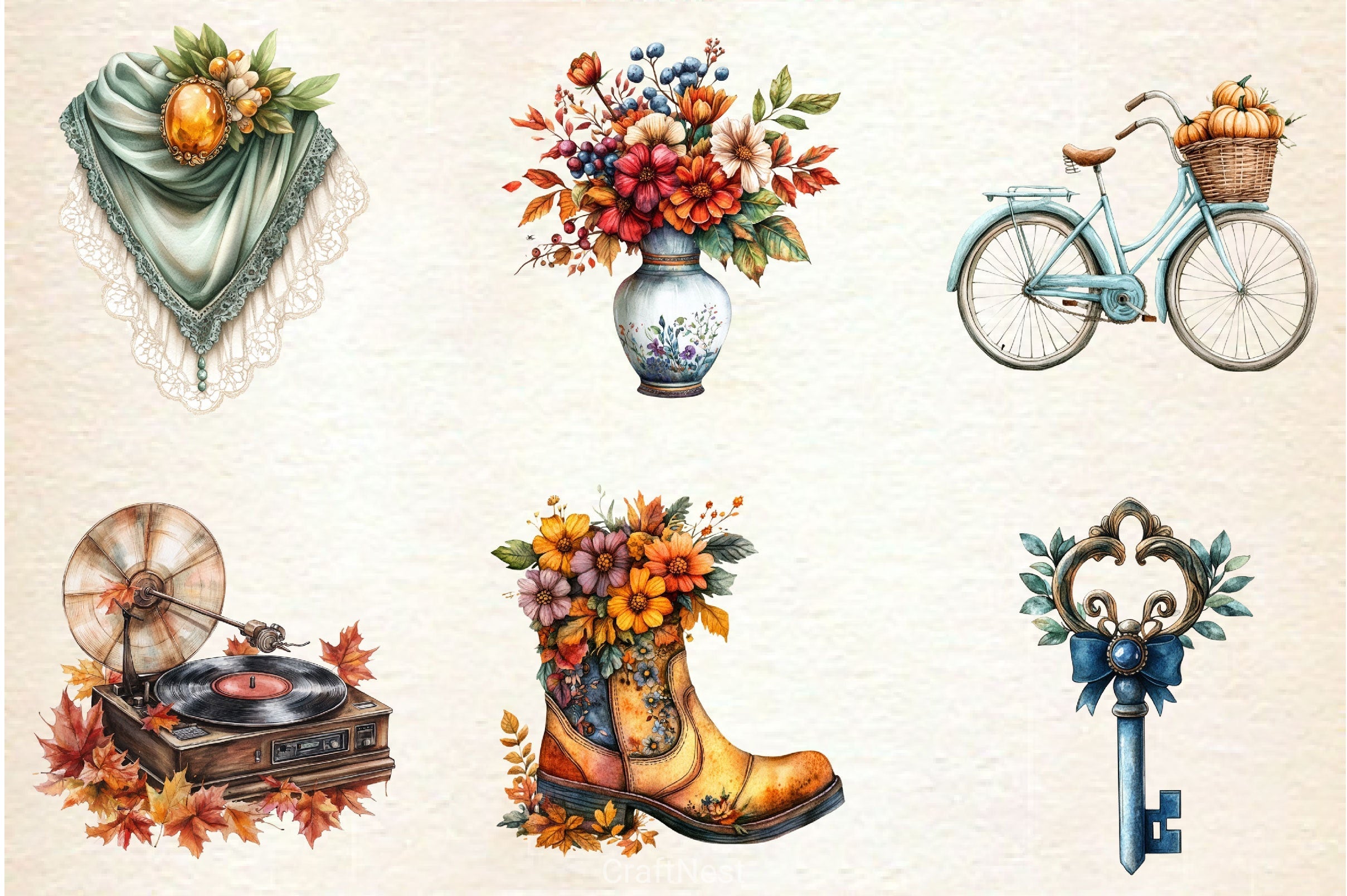 Beautiful Vintage Fall Clipart Bundle 2