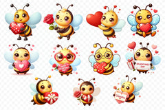 Sweet bees celebrating Valentine's Day for romantic nature projects.