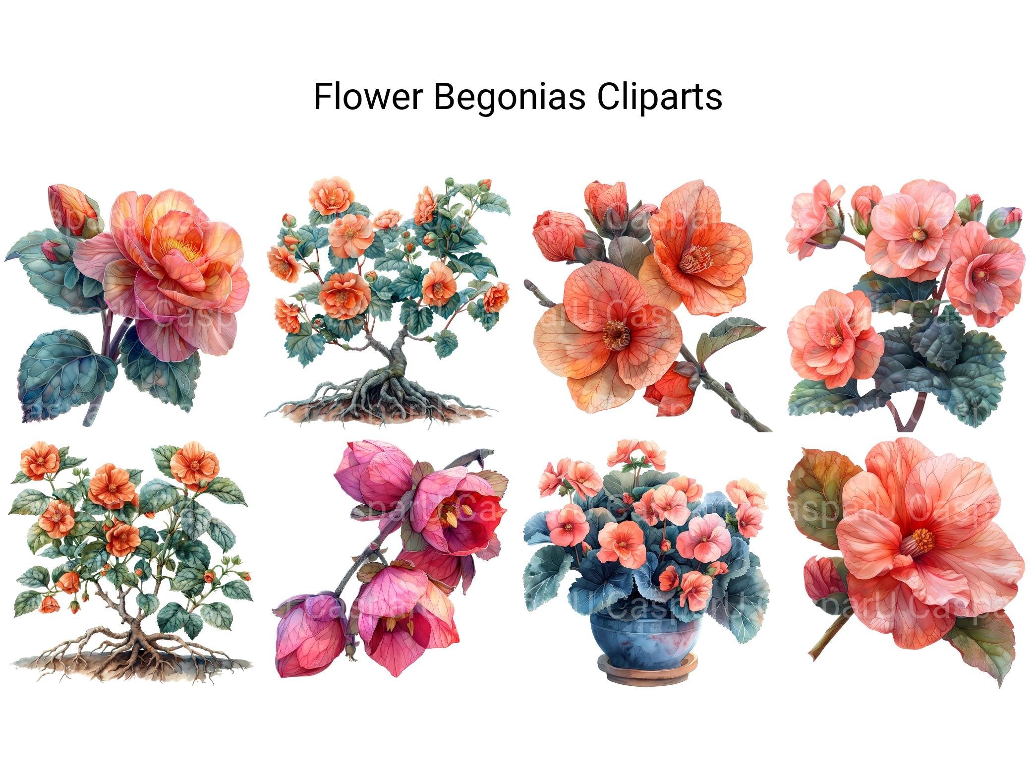 Discover the enchanting world of begonias with our digital clip art collection. These delightful clip arts showcase the intricate patterns and vibrant hues of begonia flowers, adding a whimsical touch to your digital projects, cards, and decorations. Whether you're creating invitations or embellishing your designs, these begonia clip arts are sure to inspire creativity and delight.