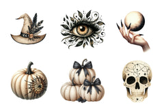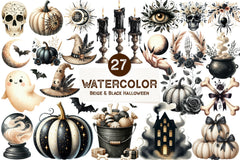 Neutral with this Beige & Black Halloween Clipart Bundle, featuring elegant spooky designs, perfect for sophisticated Halloween crafts.
