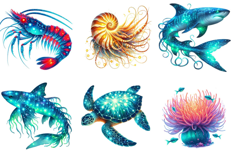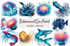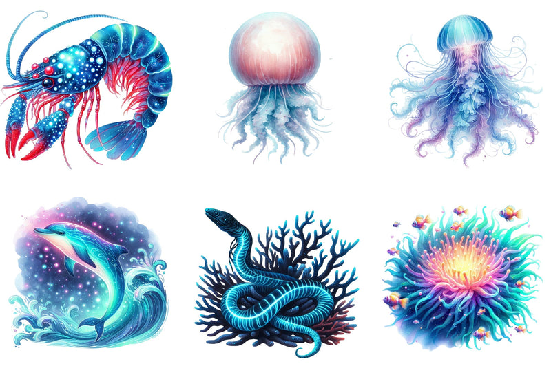 Illuminate your projects with the Bioluminescent Sea Animal Clipart Bundle, featuring stunning marine life designs that glow with vibrant colors. Perfect for ocean-themed crafts, educational materials, and digital art, this collection brings the enchanting beauty of the sea to your fingertips. Dive into creativity with these unique, high-quality illustrations, ideal for enhancing your creative projects with a touch of underwater magic.