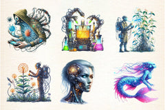 Discover the future of art with our Biopunk Character Clipart Bundle, perfect for enhancing your digital creations with a unique, avant-garde style.