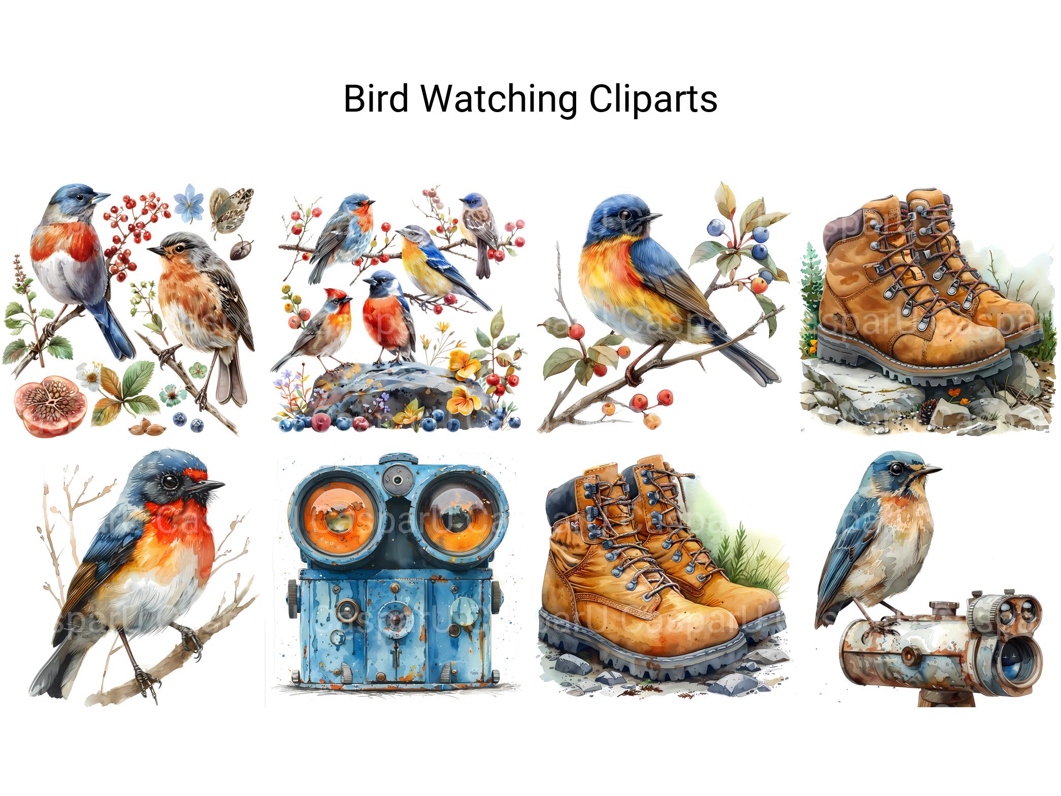Immerse yourself in the beauty of nature with our enchanting collection of bird watching-themed cliparts. From colorful songbirds to majestic birds of prey, each illustration captures the wonder and diversity of avian life. Whether you're a seasoned birdwatcher or simply appreciate the beauty of birds, our cliparts bring the outdoors to you.