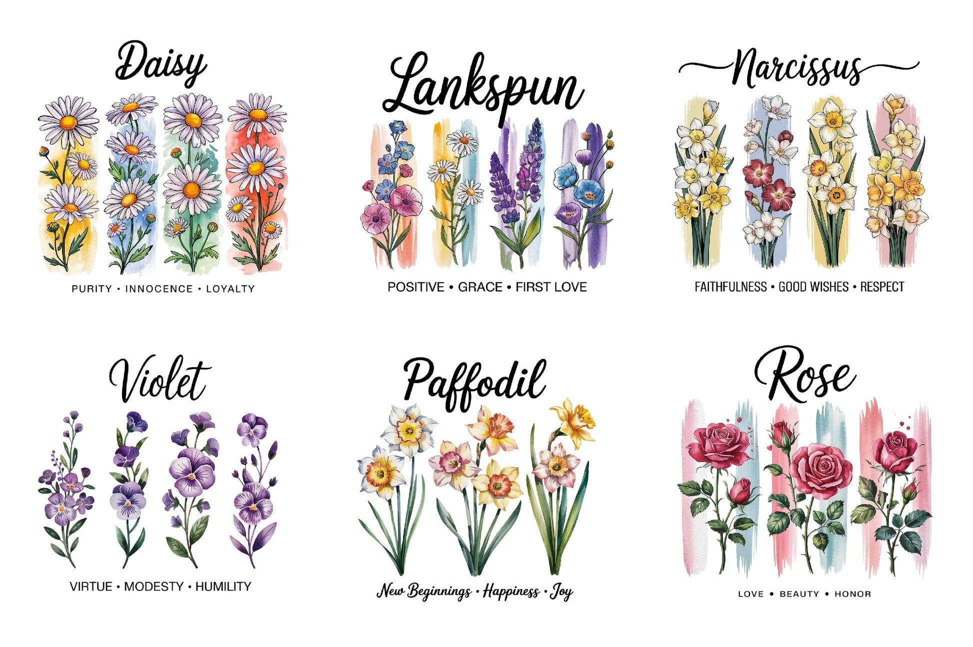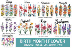 Paint with this Birth Month Flower Brushstrokes Clipart Bundle, featuring artistic flower designs, ideal for flower art crafts.