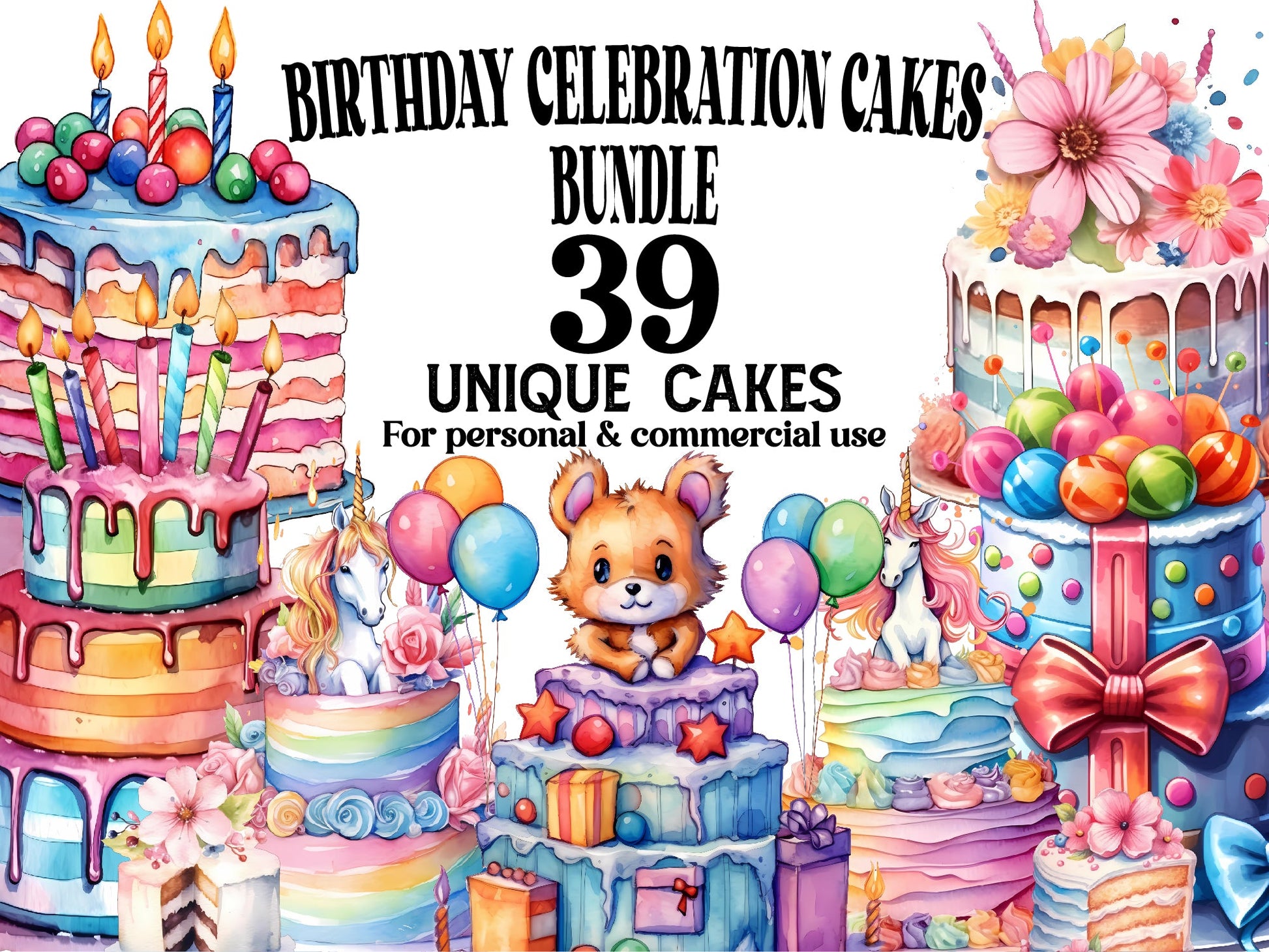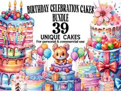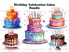 Make every birthday a memorable occasion with our Birthday Celebration Cakes clip art. These festive digital illustrations showcase cakes adorned with colorful candles, balloons, and confetti, perfect for adding a touch of joy and festivity to your designs, whether for birthday invitations, party decorations, or social media posts, capturing the spirit of birthday celebrations in delightful confections.