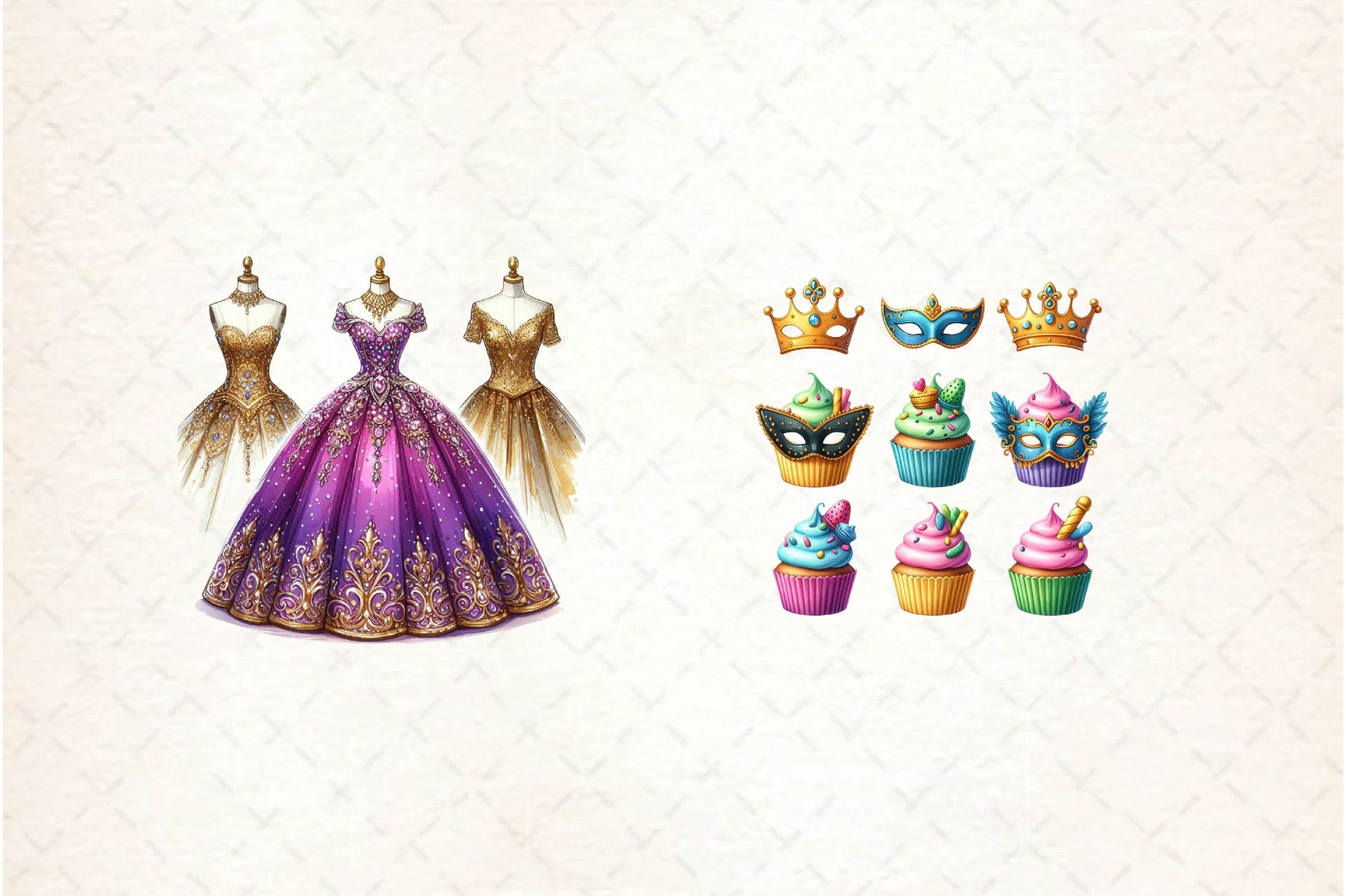 Crown with this Birthday Queen Of Mardi Gras Clipart Bundle, featuring royal celebration designs, perfect for party birthday crafts.