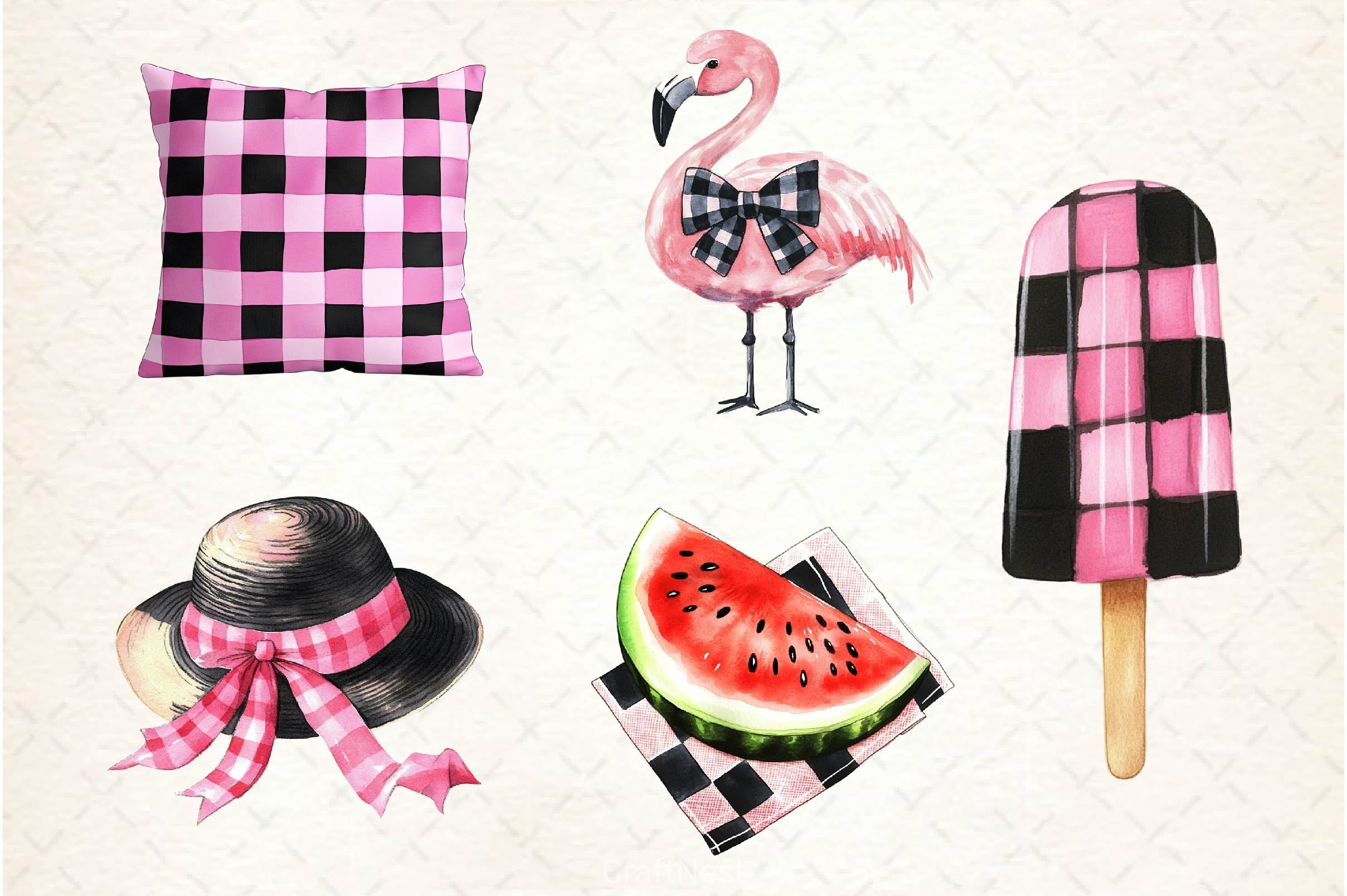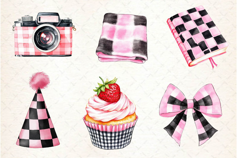 Black And Pink Gingham Summer Clipart Bundle