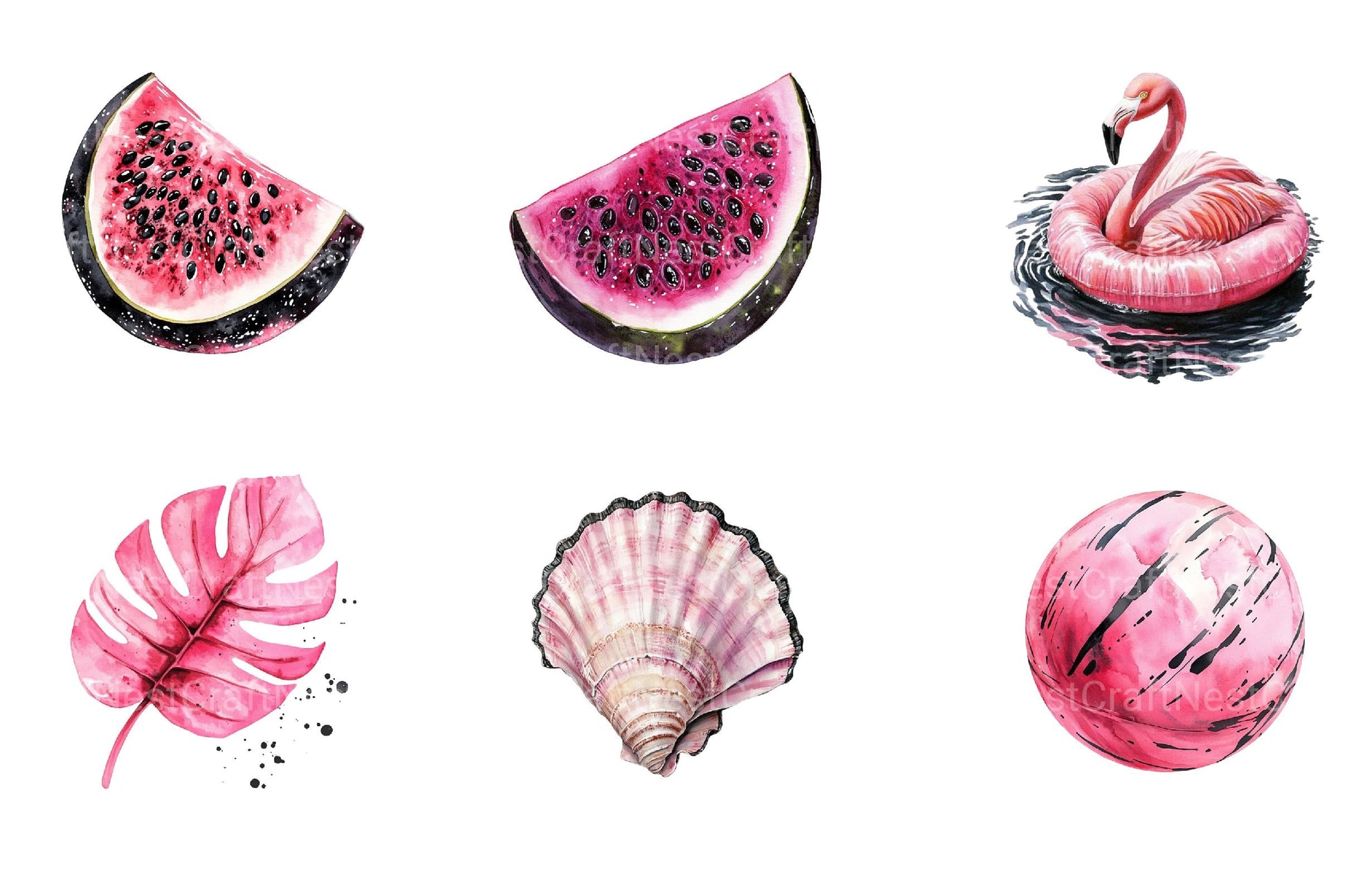 Brighten your projects with this Black and Pink Summer Clipart, featuring vibrant color designs, ideal for summer crafts.