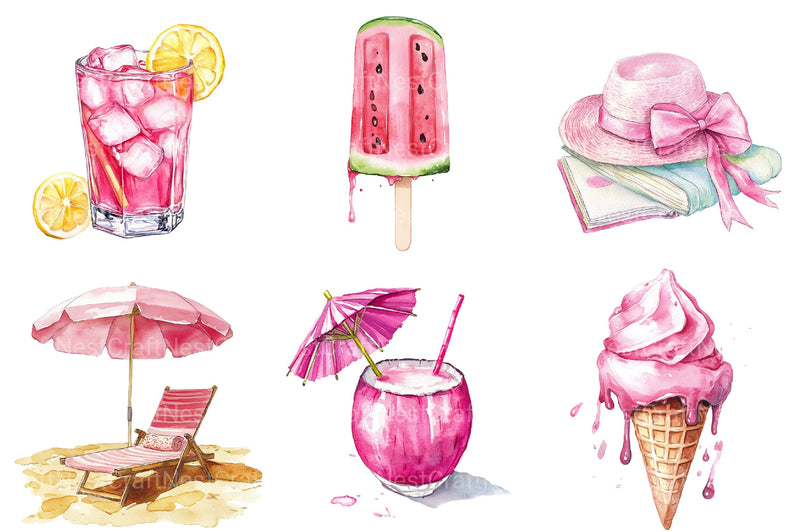 Style with this Black And Pink Summer Clipart Bundle, featuring chic color combinations, ideal for trendy summer crafts.