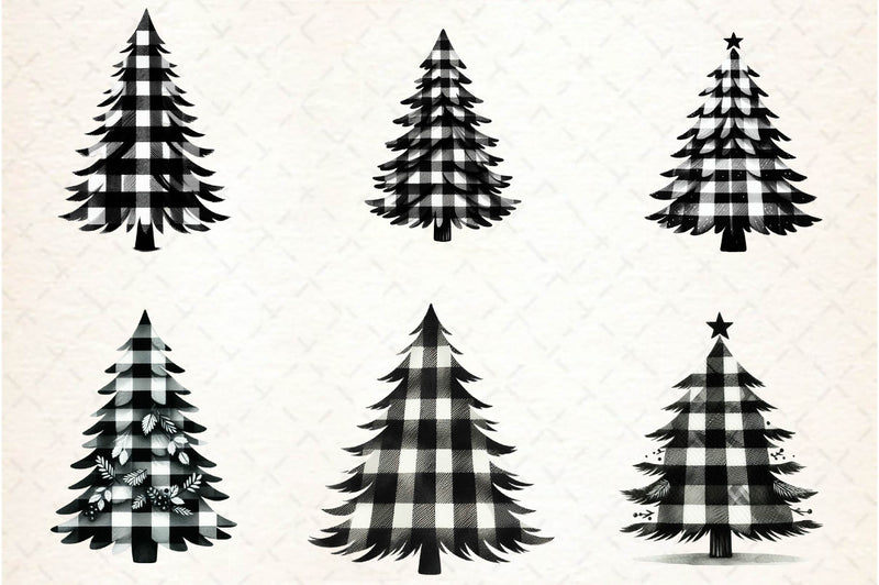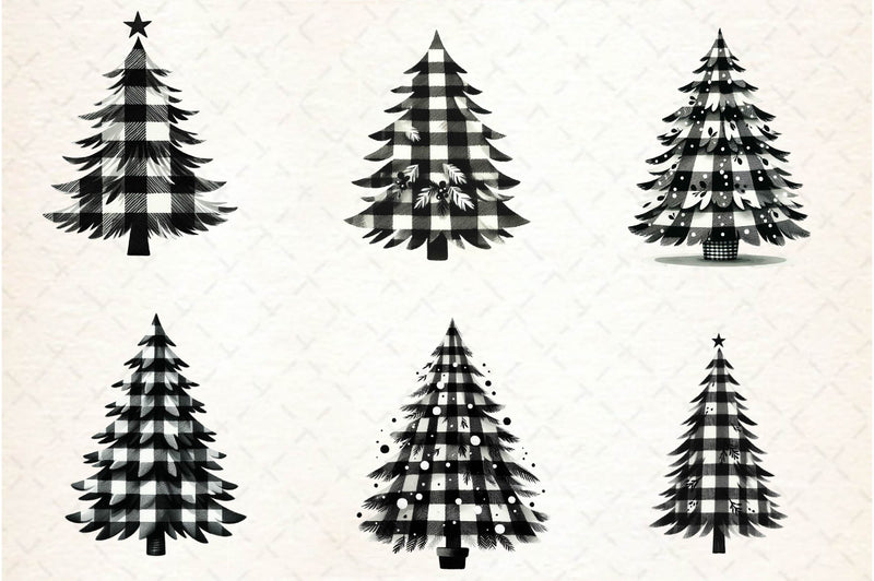 Decorate with this Black And White Christmas Tree Clipart Bundle, featuring monochrome tree designs, perfect for classic Christmas crafts.