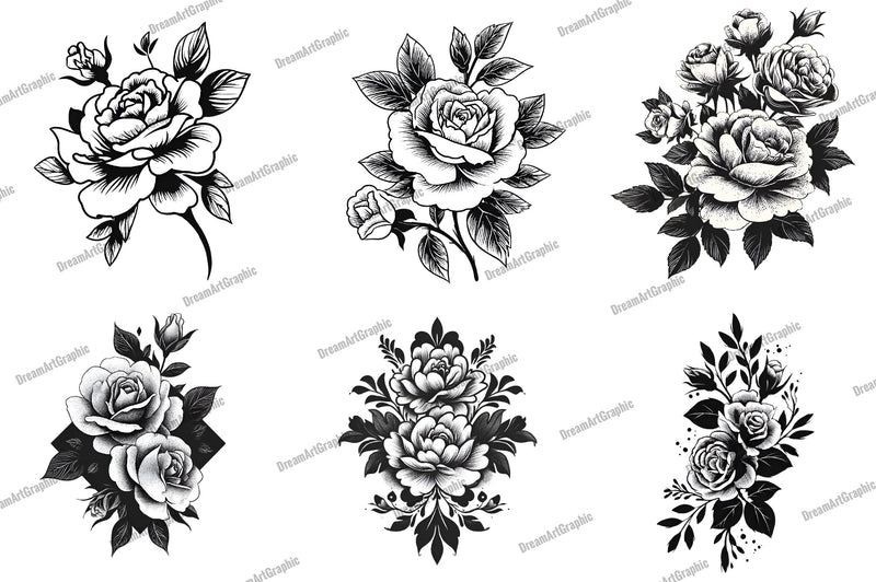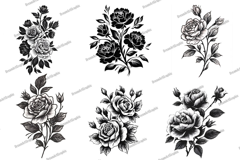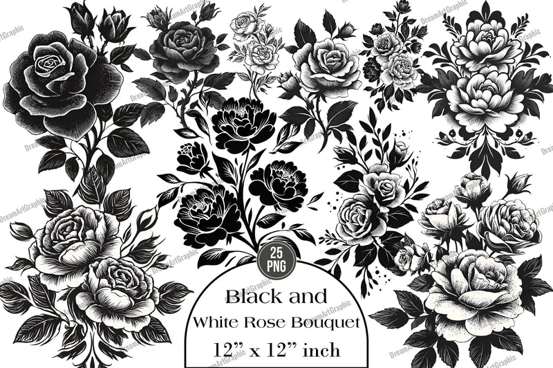 Enhance your creative projects with our Black and White Rose Bouquet Clipart Bundle. Perfect for wedding invitations, elegant stationery, and sophisticated designs, this collection offers timeless floral beauty. Ideal for digital scrapbooking, card making, and more, these high-resolution images ensure stunning results. Unleash your creativity with versatile rose illustrations that add a touch of classic charm to any project.