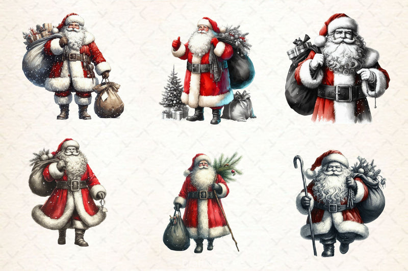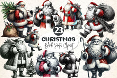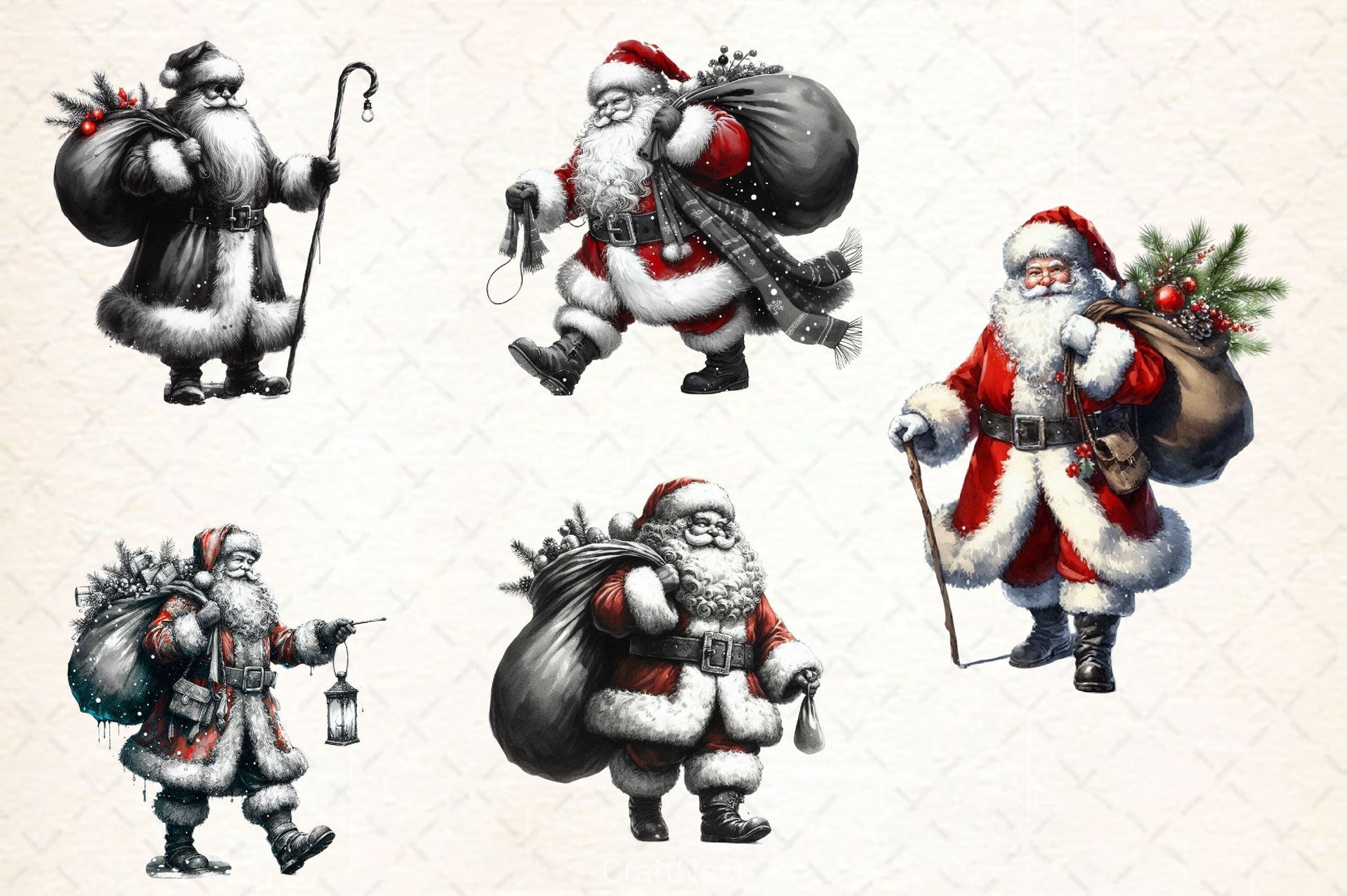 Classic with this Black And White Santa Clipart Bundle, featuring monochrome holiday designs, perfect for vintage Christmas crafts.