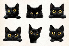 Black Cat Peeking Clipart Bundle 2