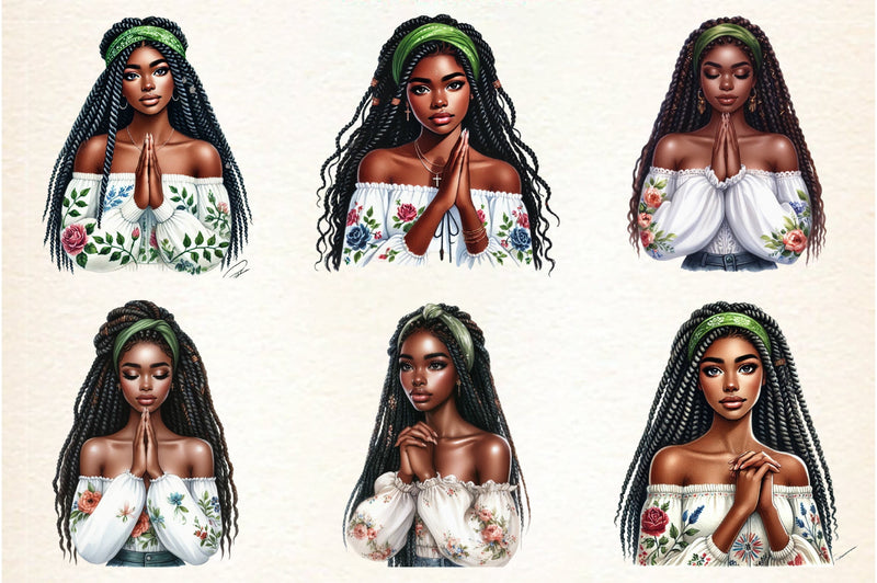 Celebrate diversity and spirituality with our exclusive Black Girl Praying Clipart Bundle, designed to inspire and uplift your artistic endeavors.