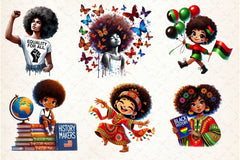 Celebrate with this Black History Month Afro Girl Clipart Bundle, featuring diverse heritage designs, perfect for cultural people crafts.