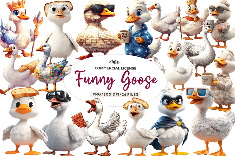 Blocky Style Funny Goose Clipart Bundle