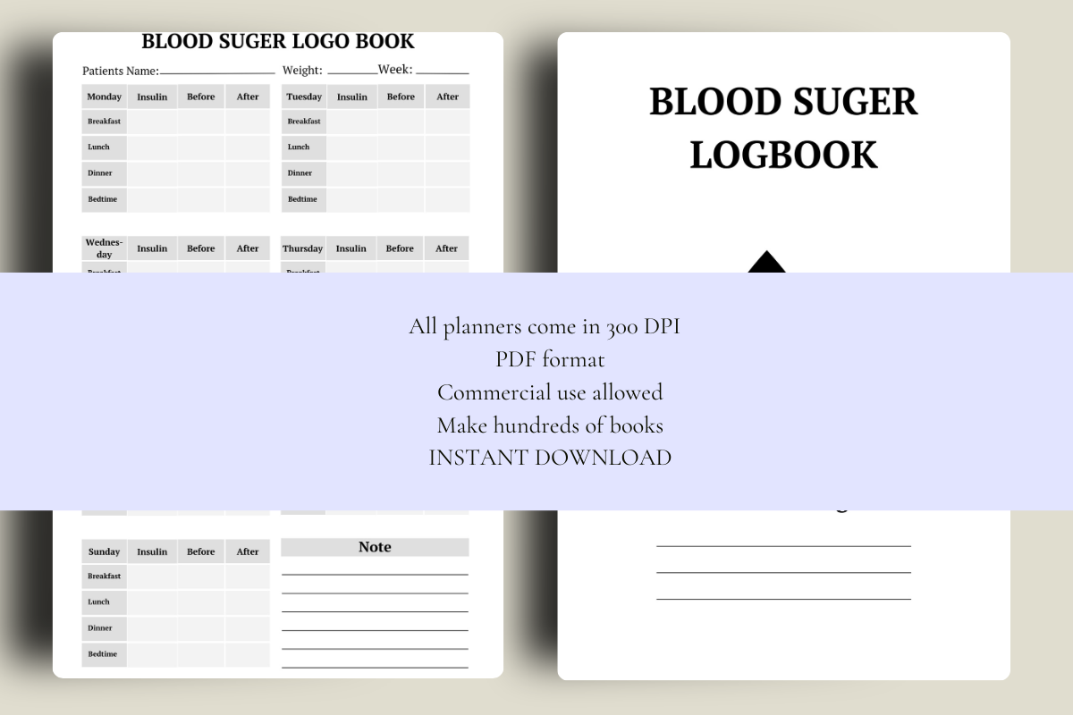 Manage your health effortlessly with our Blood Sugar Logbook KDP Planner. This essential tool is designed for tracking daily glucose levels, ensuring you stay on top of your diabetes management. Perfect for individuals seeking a comprehensive and organized approach to monitor their blood sugar, this planner offers ample space for notes, meal tracking, and medication logs. Ideal for both beginners and seasoned users, it’s a must-have for anyone committed to maintaining a healthy lifestyle. Enhance your wellness journey with this user-friendly and practical logbook, crafted to support your health goals with ease and precision.