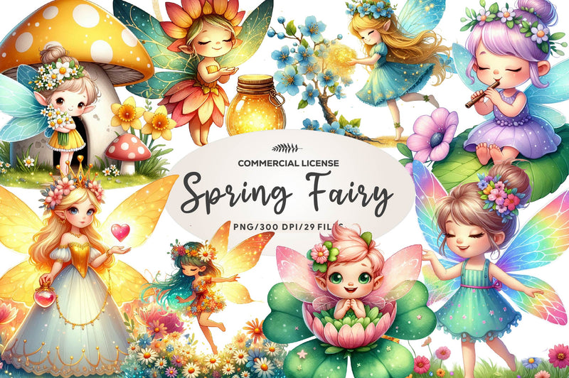 Fairy with this Blossoming Spring Fairy Collection Clipart Bundle, featuring spring fairy designs, perfect for seasonal enchanted crafts.
