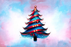 Blue And Red Glam Christmas Tree Clipart Bundle