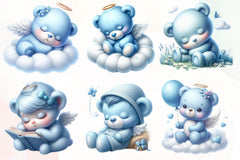 Comfort with this Blue Angel Teddy Bear Clipart Bundle, featuring angelic teddy bear designs, ideal for baby crafts.