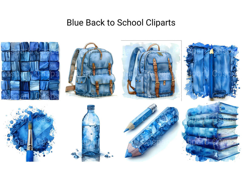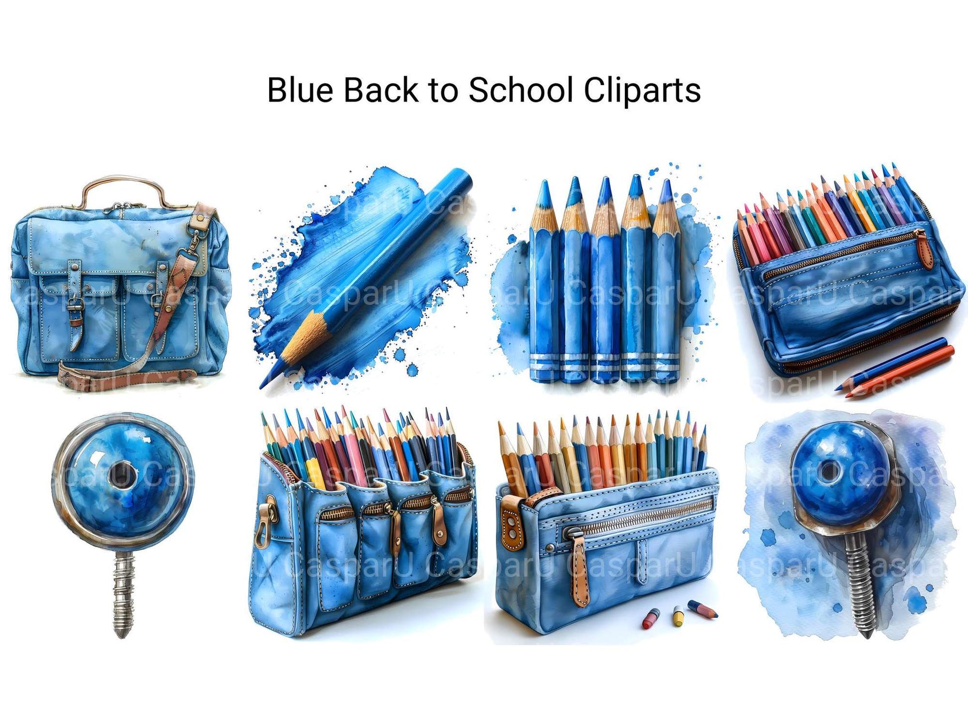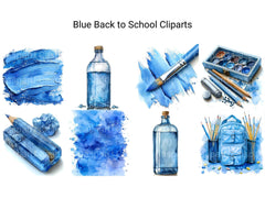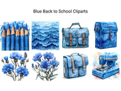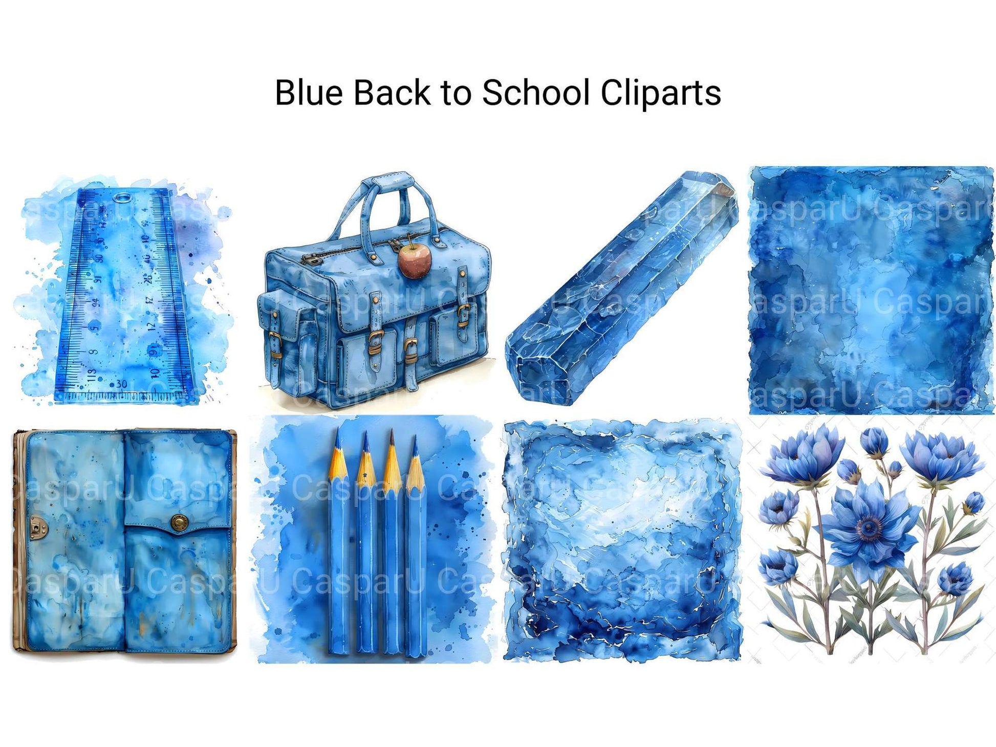 Dive into a calming world of school-themed cliparts in soothing shades of blue. From backpacks to books, these illustrations bring a cool, tranquil vibe to any back-to-school design.