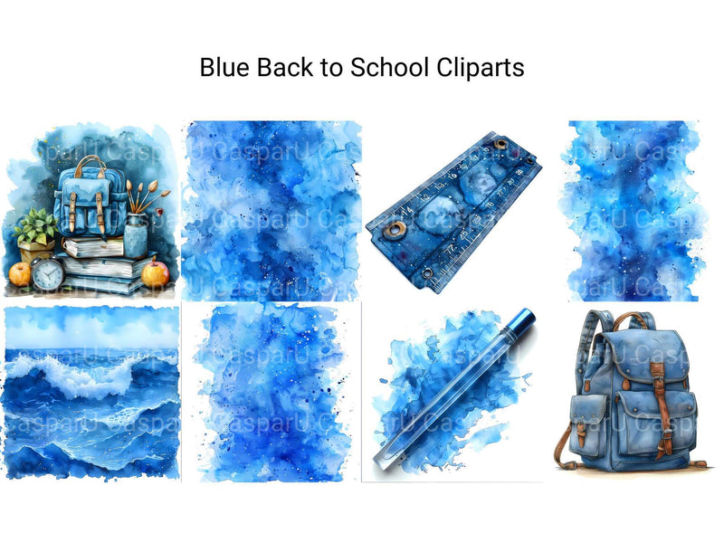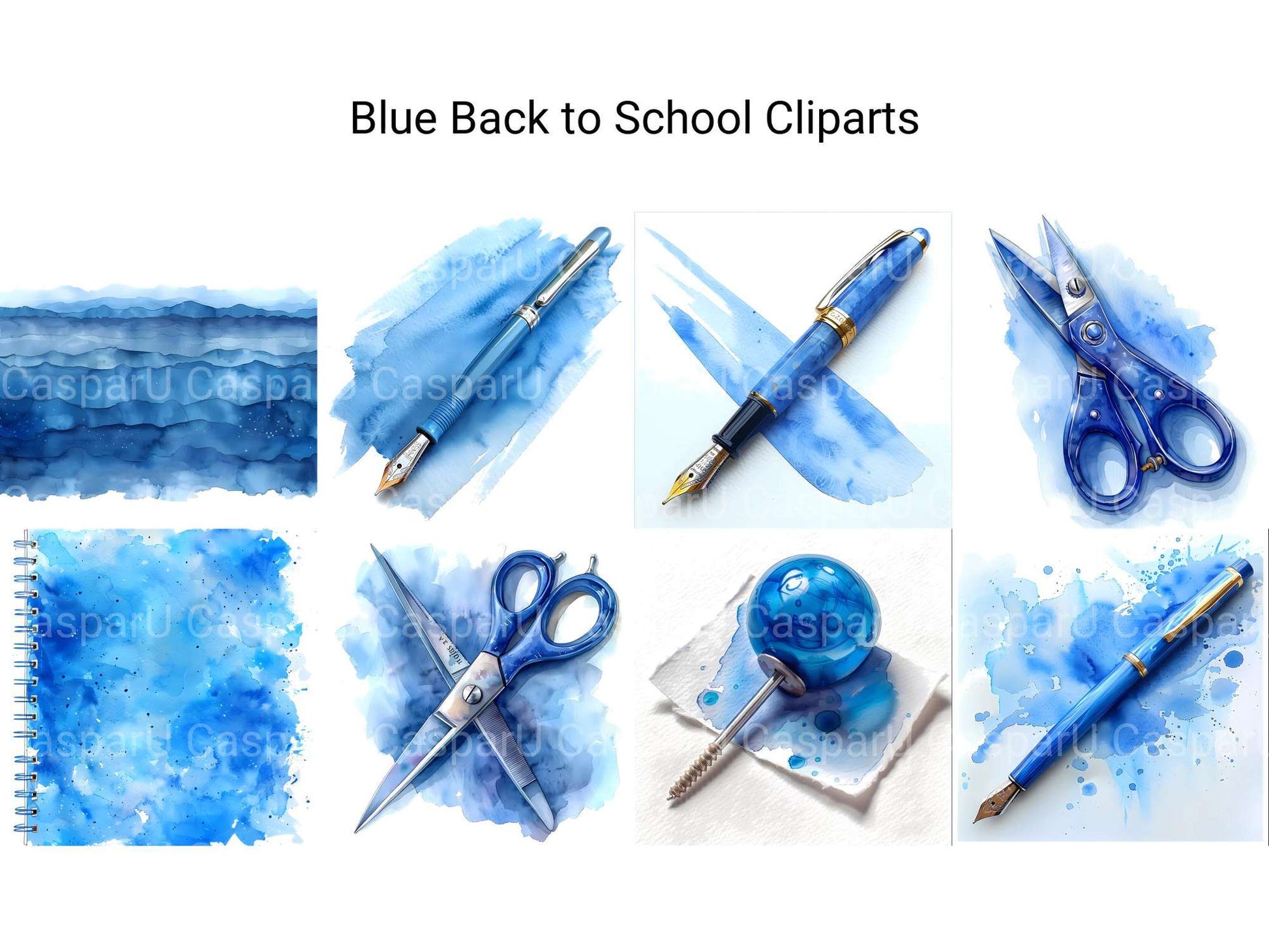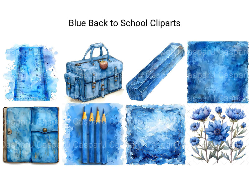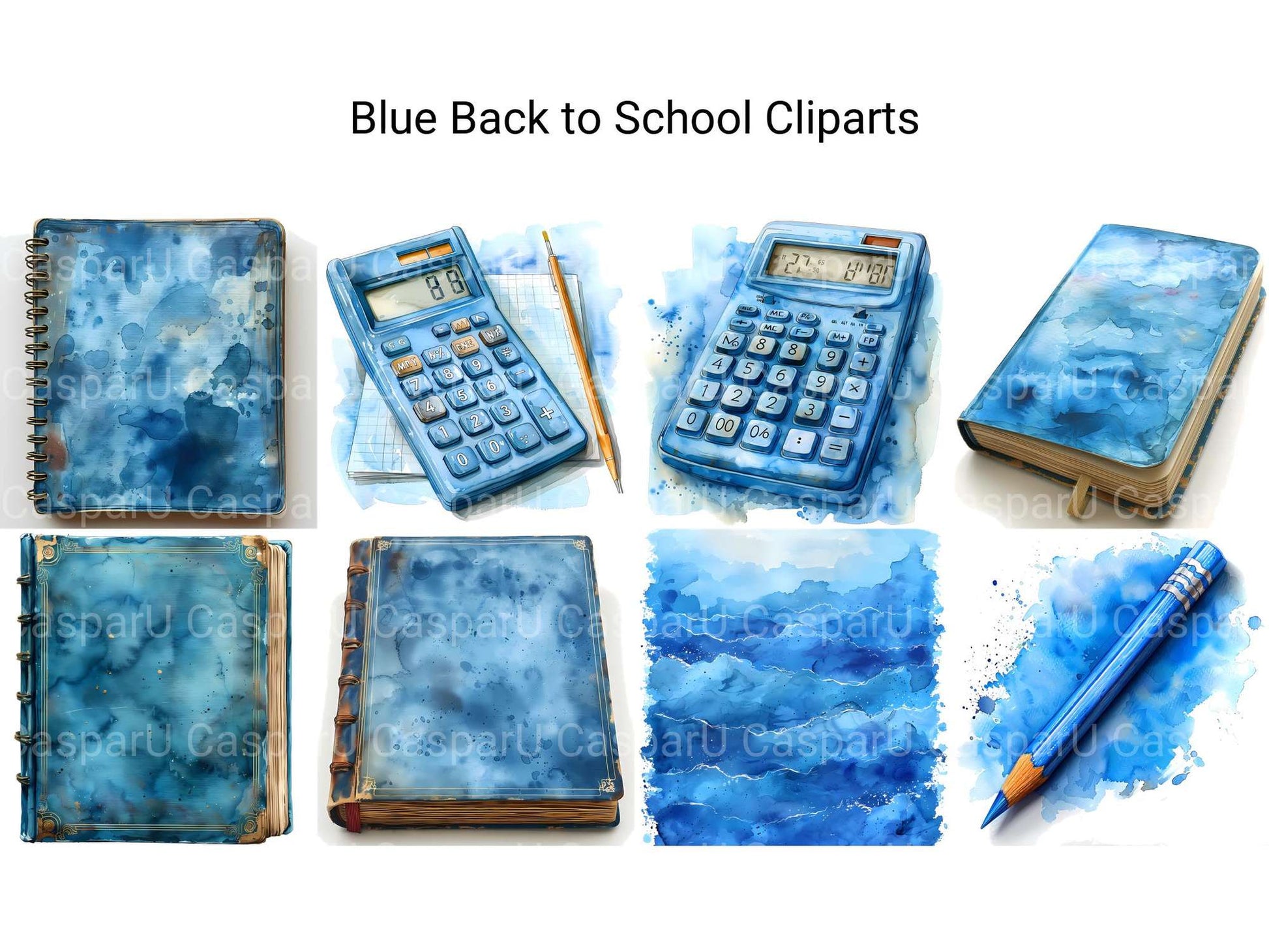 Dive into a calming world of school-themed cliparts in soothing shades of blue. From backpacks to books, these illustrations bring a cool, tranquil vibe to any back-to-school design.