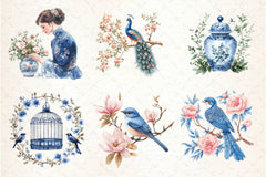 Oriental with this Blue Chinoiserie Spring Clipart Bundle, featuring Asian seasonal designs, perfect for cultural spring crafts.