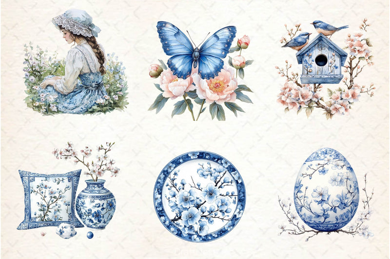 Blue Chinoiserie Spring Clipart Bundle 2