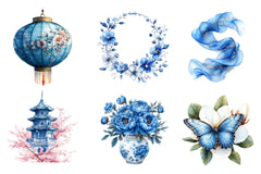 Blue Chinoiserie Summer Clipart Bundle 2