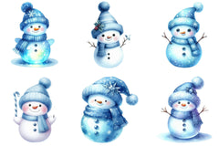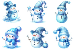 Blue Cute Snowman Clipart Bundle