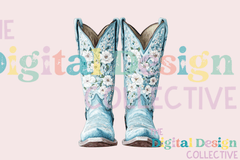 Blue Floral Cowgirl Boot Clipart Bundle