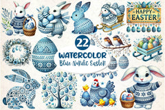 Blue Nordic Easter Clipart Bundle 2