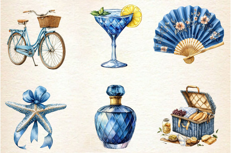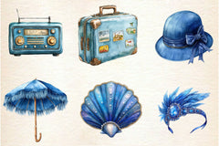 Jazz with this Blue Summer 1920 Clipart Bundle, featuring vintage era designs, perfect for roaring twenties crafts.