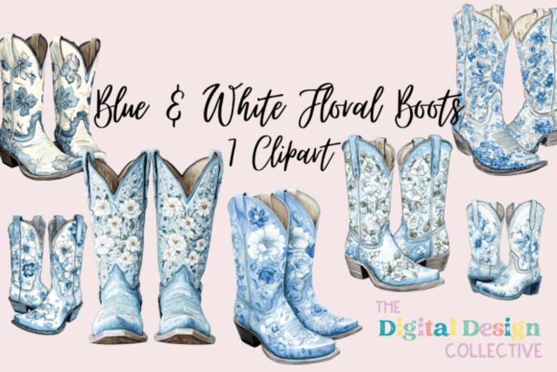 Step into style with our Blue and White Floral Western Boots Clipart Bundle. Perfect for digital scrapbooking, invitations, and creative projects, these high-quality designs add a touch of rustic charm to any craft. Ideal for western-themed events and DIY enthusiasts.