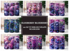 Celebrate the sweetness and vibrant color of blueberries with this seamless tumbler wrap. The design features a detailed depiction of juicy blueberries, adding a refreshing and lively touch to your drinkware. Ideal for a fresh, fruity look.