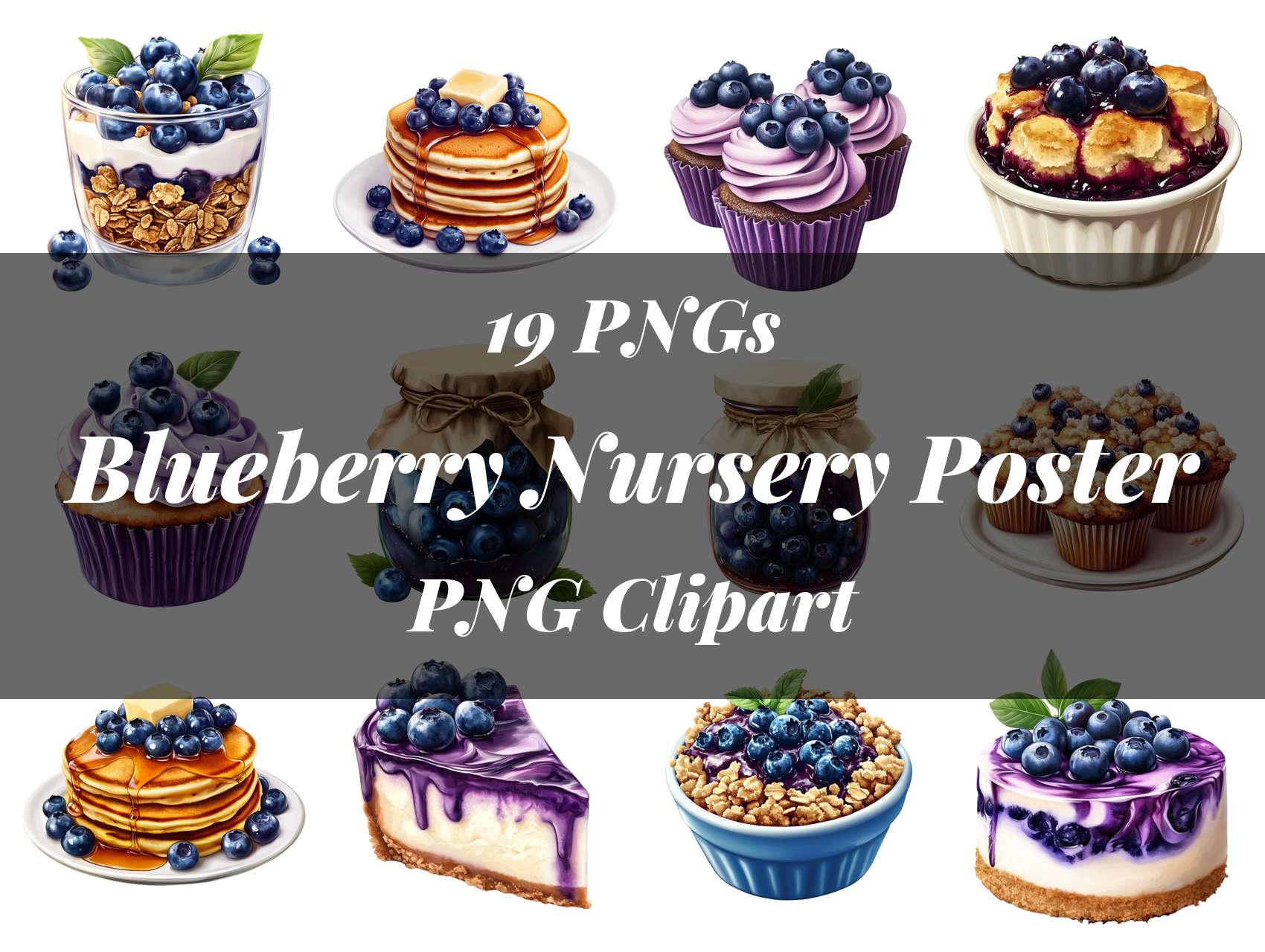 Berry cute with this Blueberry Nursery Poster Clipart set, featuring sweet blueberry designs, ideal for nursery decor.
