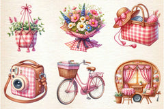 Bohemian Pink Gingham Summer Clipart Bundle 2