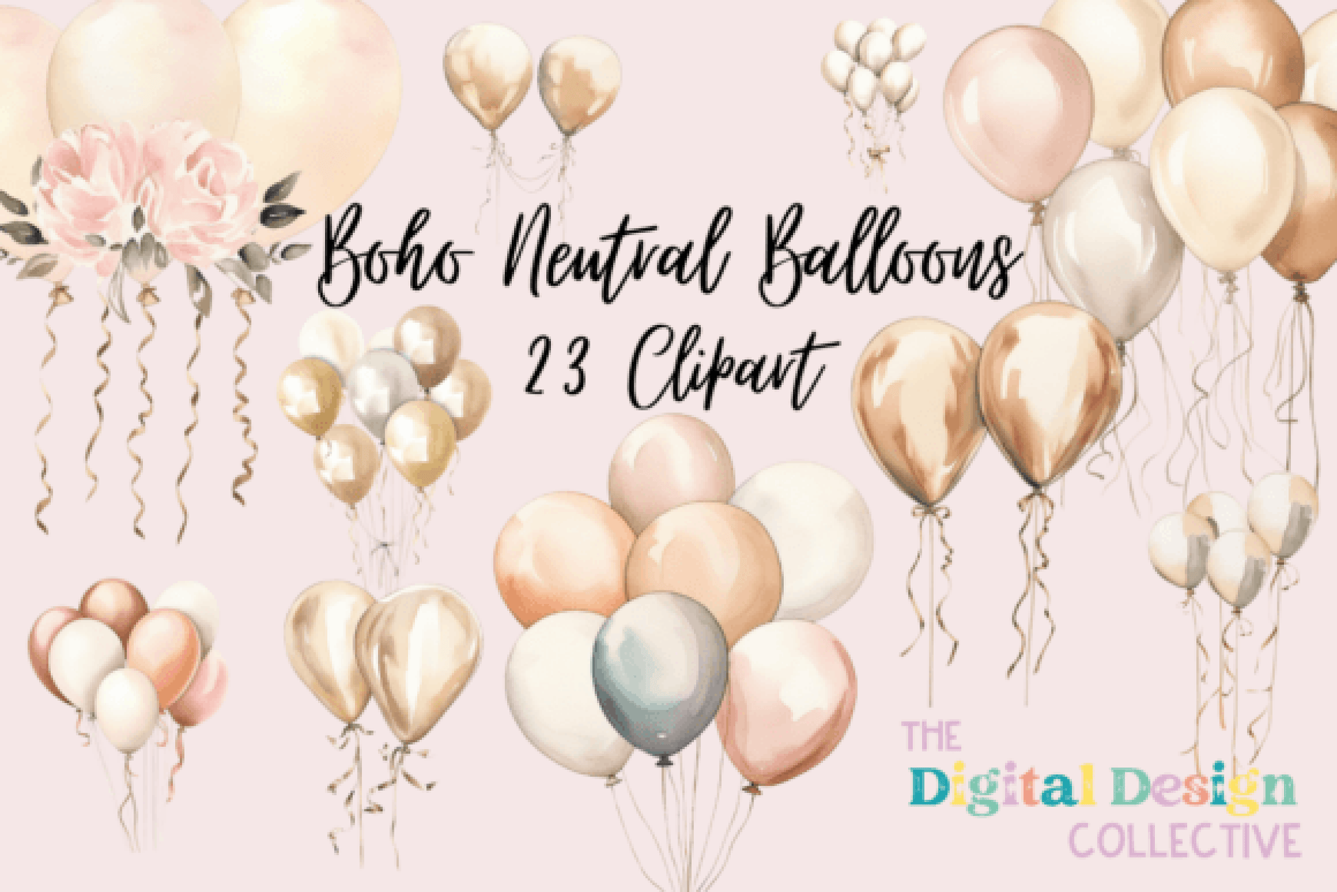 Elevate your creative projects with the Boho Balloons Clipart Collection Bundle, featuring whimsical balloon designs perfect for bohemian-themed crafts, invitations, and digital art.