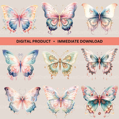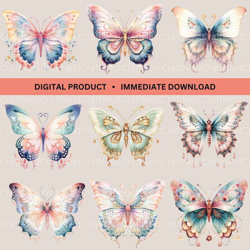 Flutter with this Boho Butterflies 9 Clipart Bundle, featuring bohemian butterfly designs, ideal for boho nature crafts.