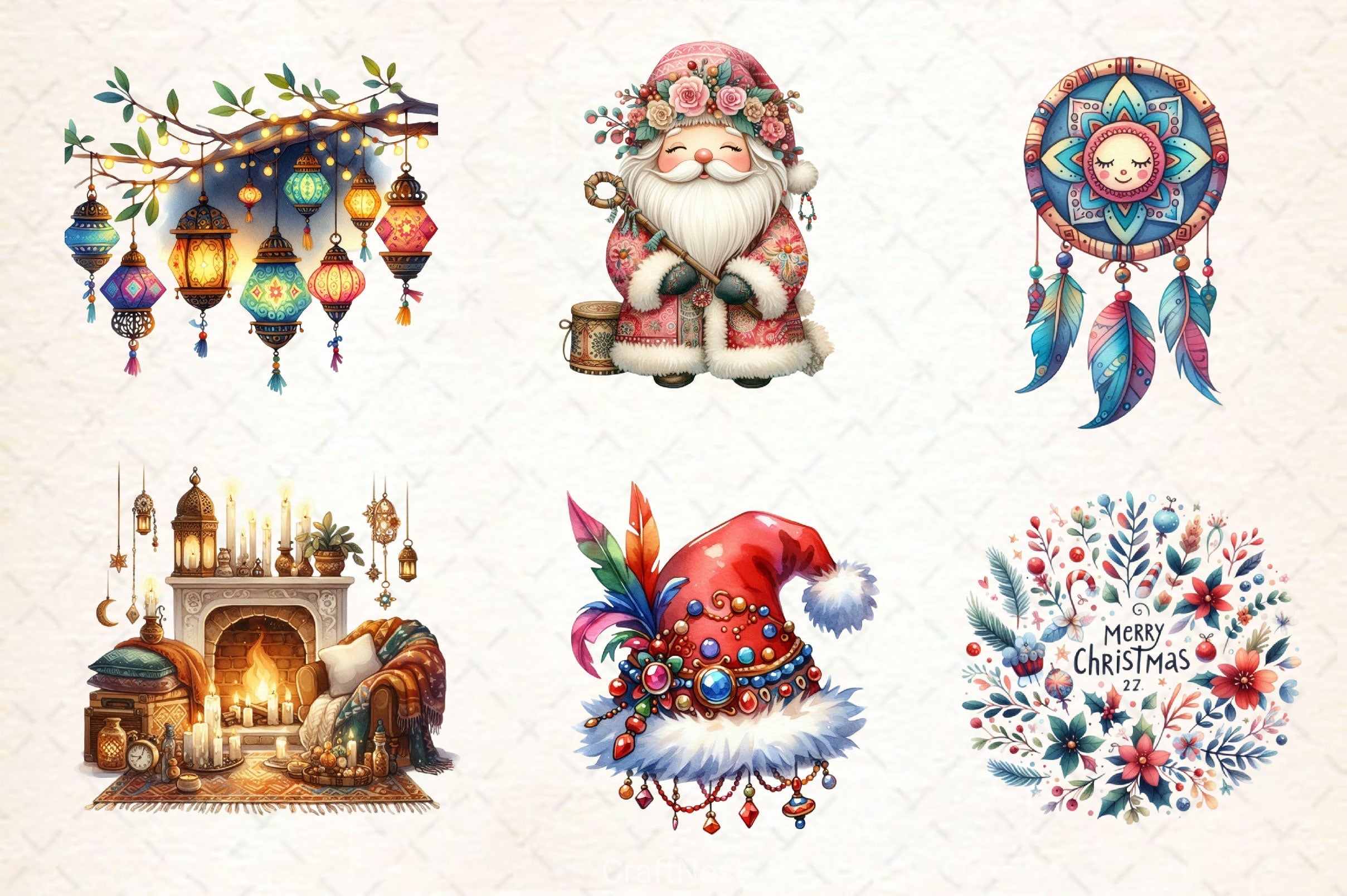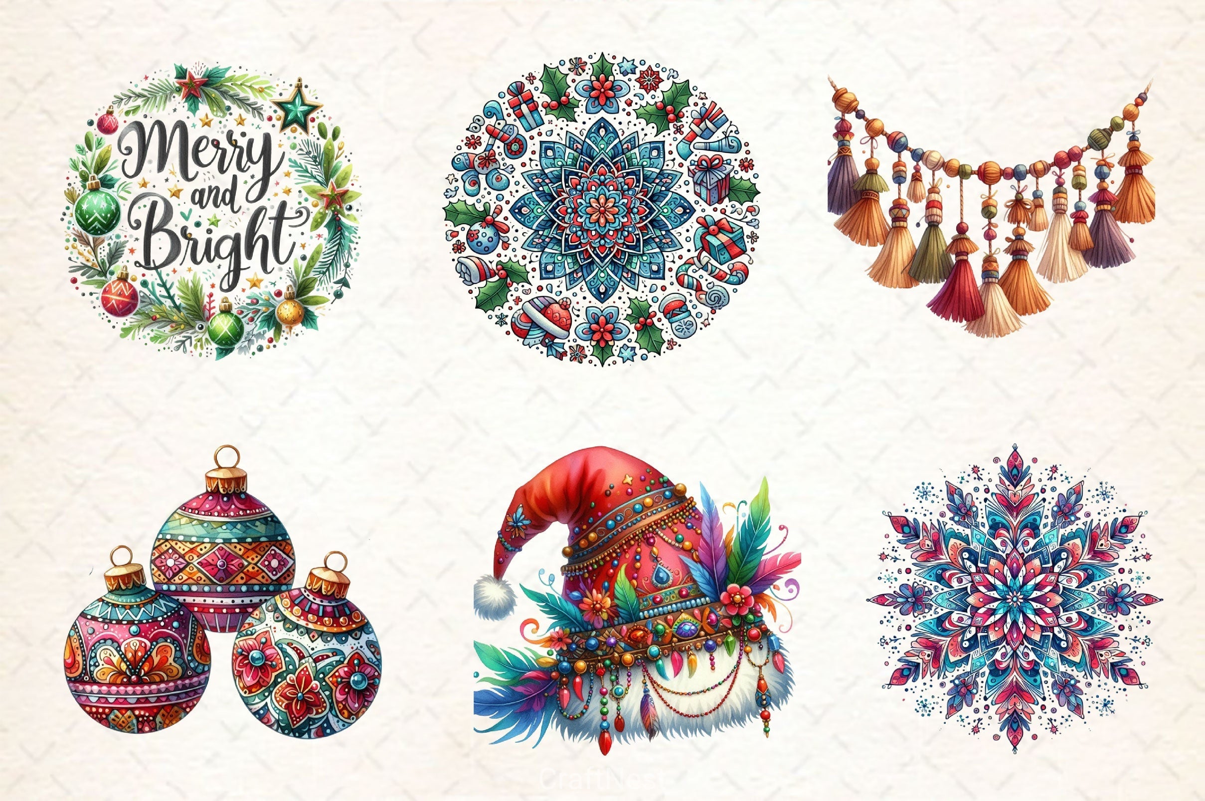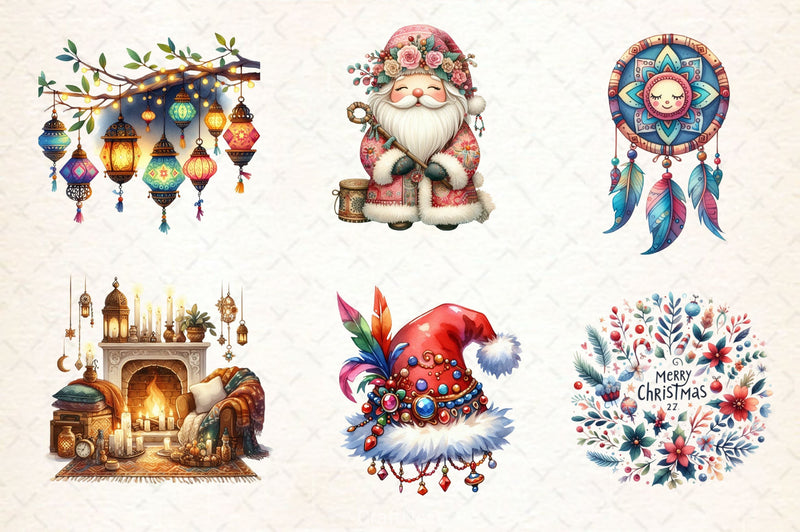 Boho Christmas Clipart Bundle