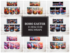 Celebrate Easter with a Boho flair with our Boho Easter digital mug wraps. These enchanting designs showcase intricate Bohemian patterns and Easter elements, bringing a sense of whimsy to your mug collection and inviting you to start your day with the carefree spirit of Boho chic amidst the colorful celebrations of Easter.