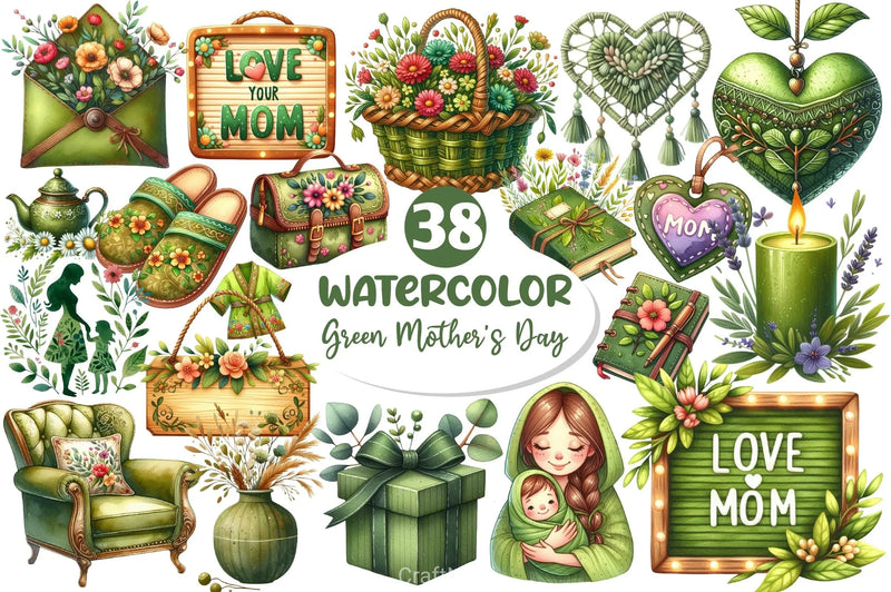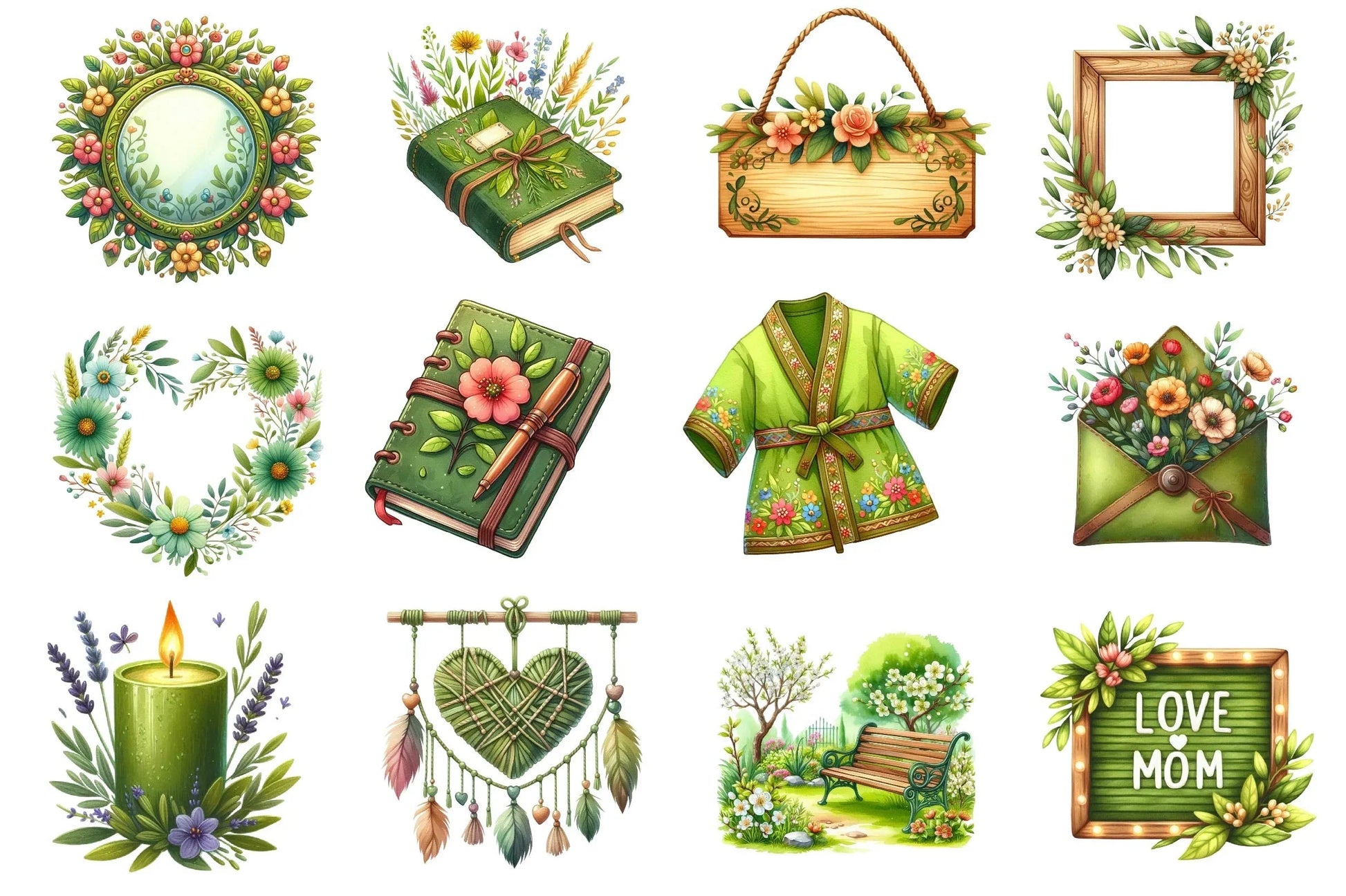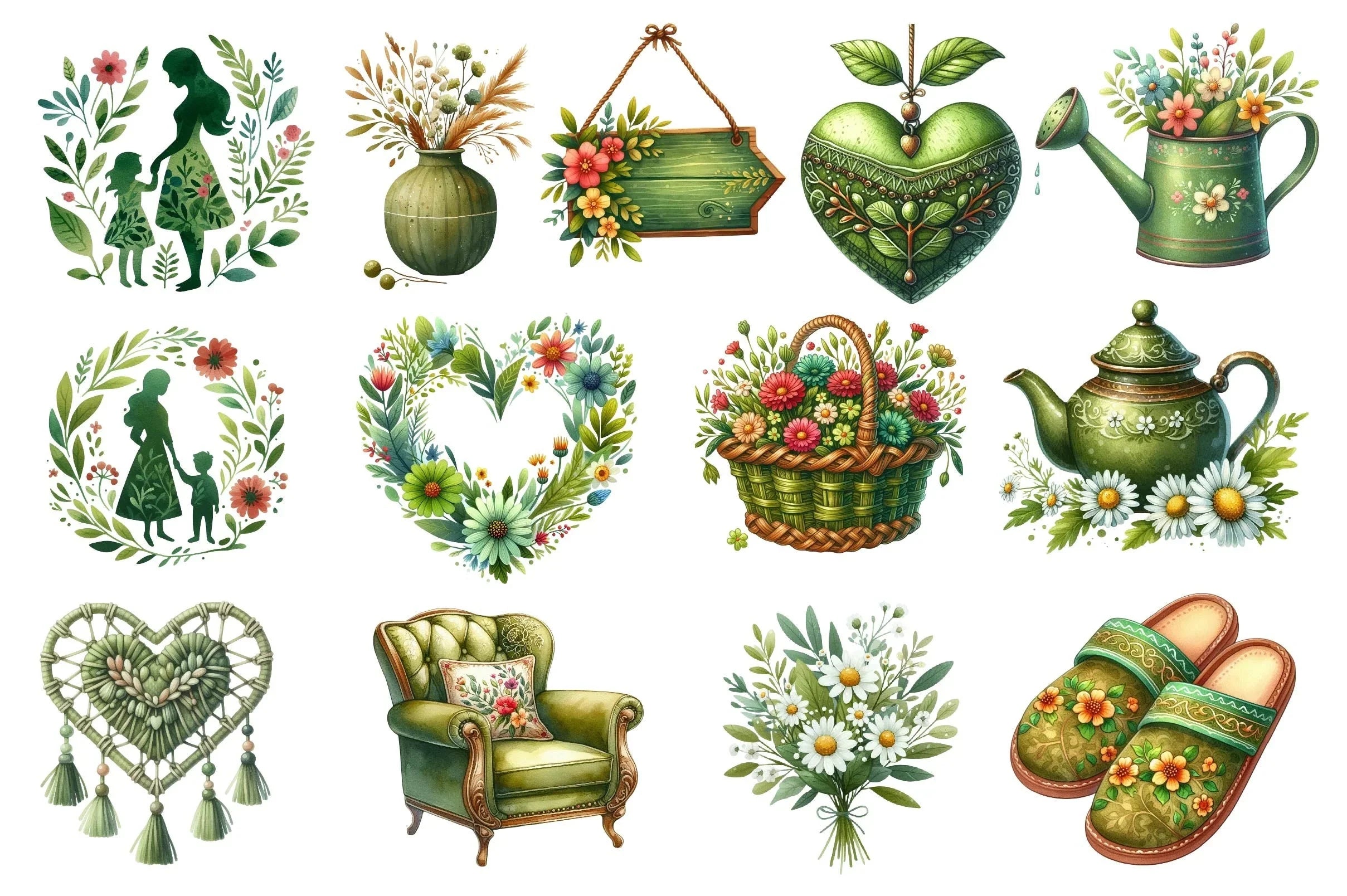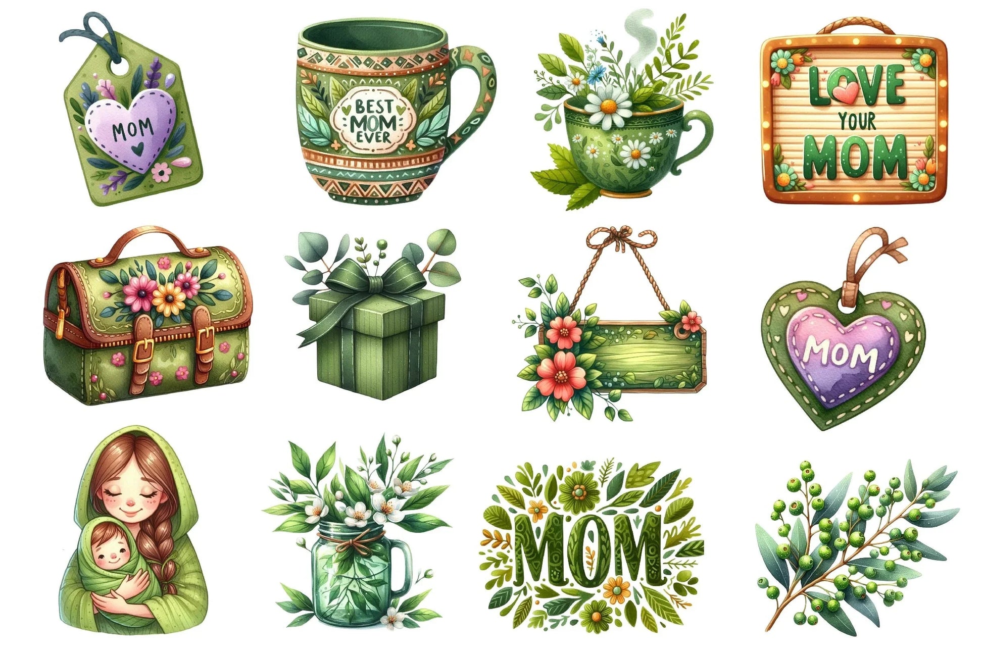 Celebrate Mother's Day with our Boho Olive Green Clipart Bundle, featuring elegant designs perfect for creating heartfelt cards, personalized gifts, and unique crafts. Ideal for adding a touch of bohemian charm to your projects.