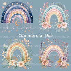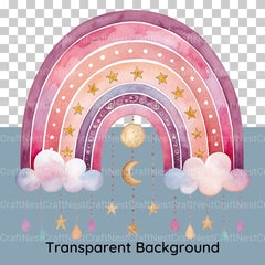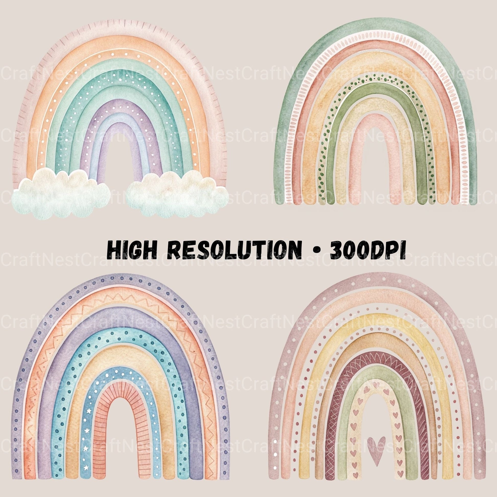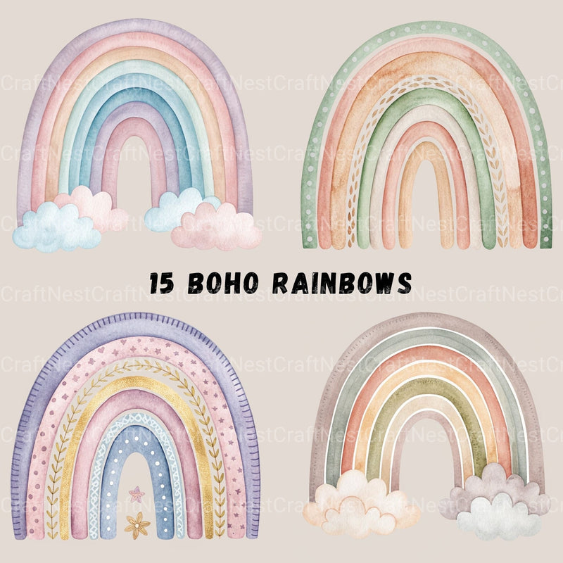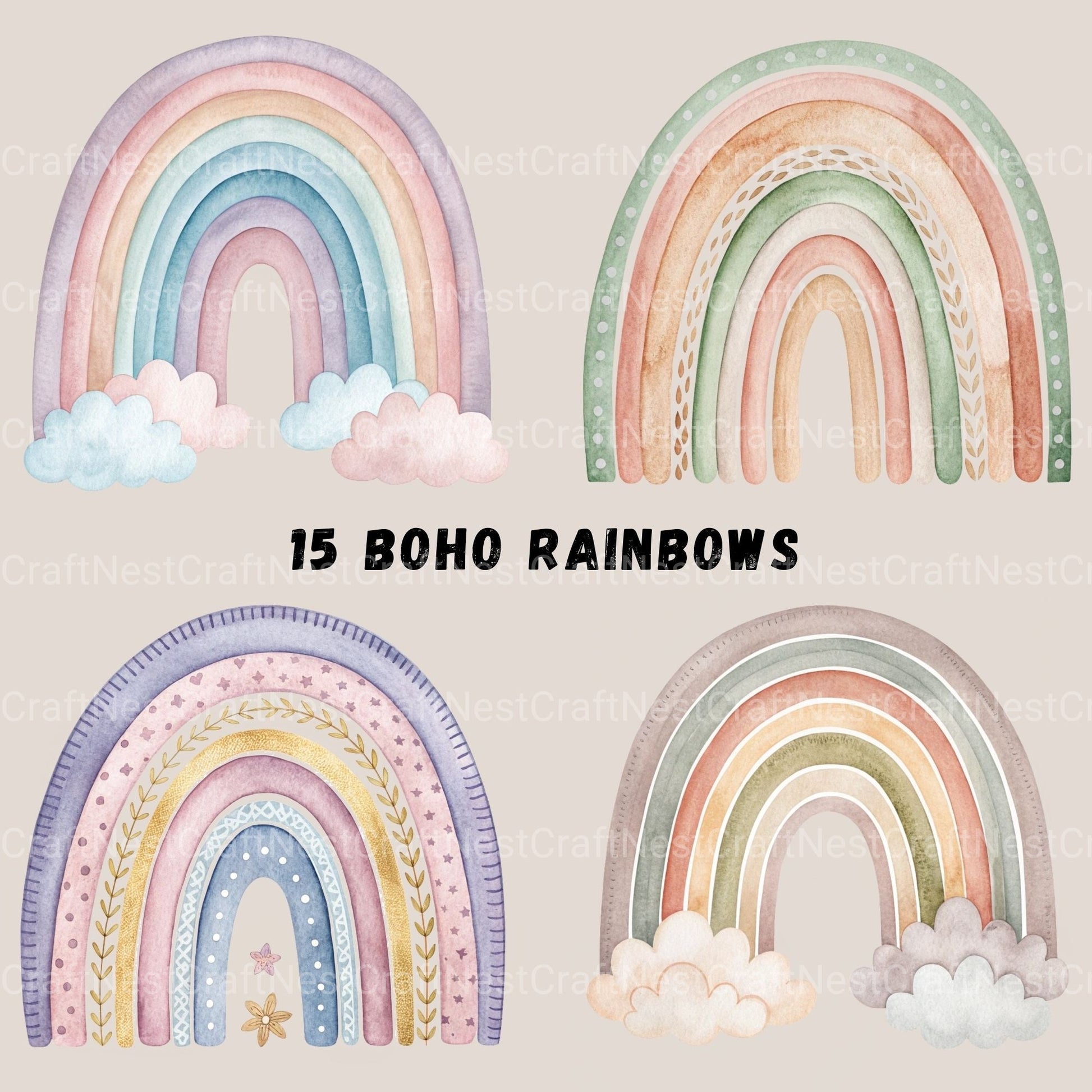 Arc with this Boho Rainbows 15 Clipart Bundle, featuring bohemian rainbow designs, perfect for boho color crafts.