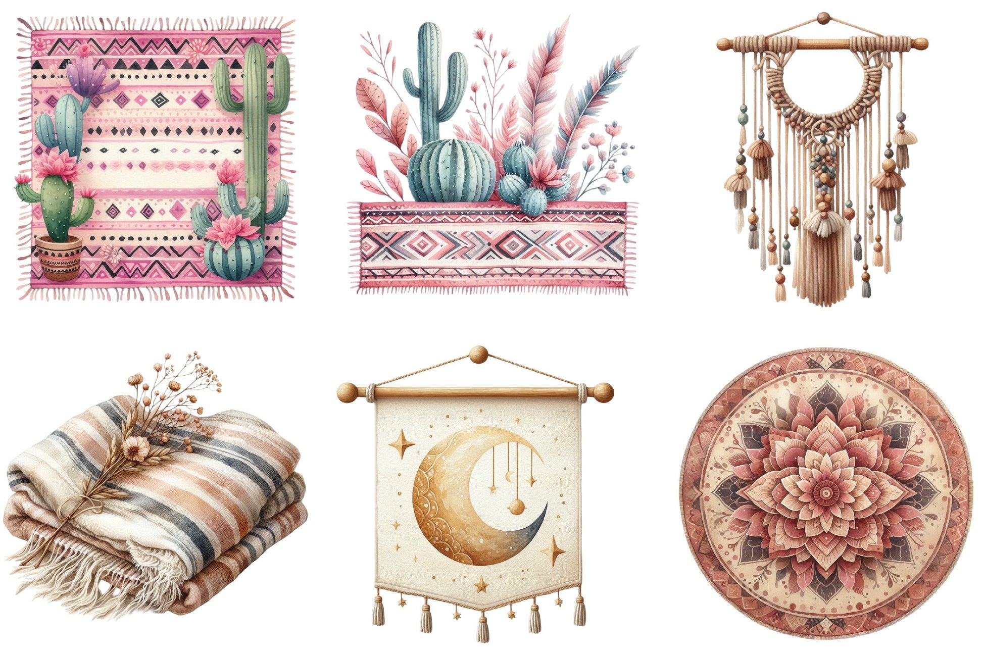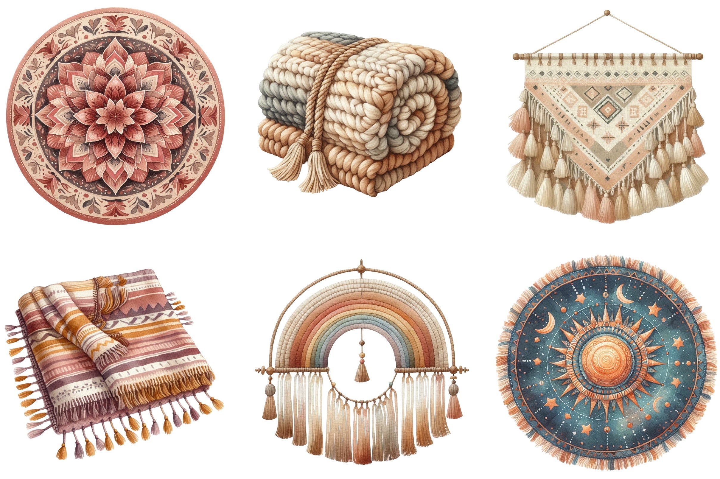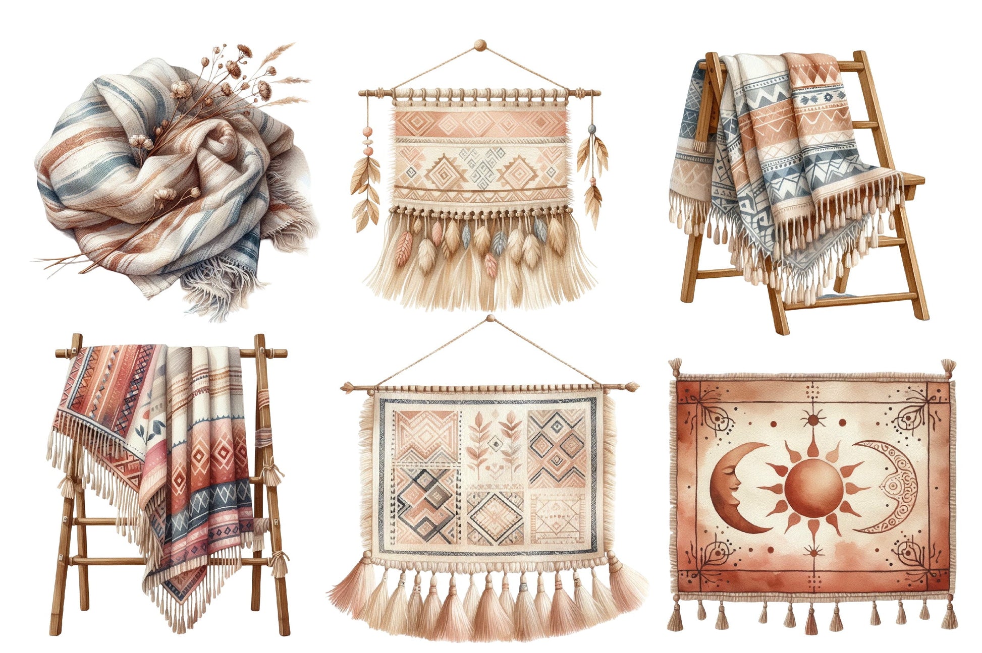 Boho Tapestry & Blanket Clipart Bundle